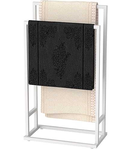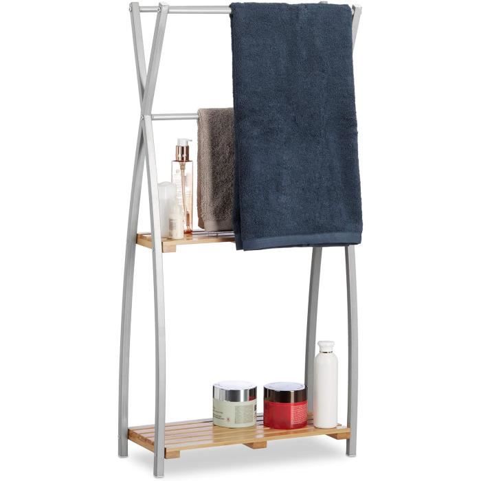 Son design épuré convient à tous les intérieurs. Élégance et fonctionnalité pour votre intérieur ! Matériau durable : Le cadre en métal peint par poudrage est solide, résistant à la corrosion et à l’humidité — parfait pour une utilisation durable dans la salle de bains. Son style élégant et minimaliste fait du VIVO un accessoire polyvalent, adapté aussi bien aux salles de bains modernes que classiques. Porte-serviettes sur pied 48 x 24 x 78,5 cm fer doré L’entretien est un jeu d’enfant : il suffit de l’essuyer avec un chiffon humide. Fabriqué en métal de haute qualité avec finition poudre, ce porte-serviettes est résistant à la corrosion, à l’humidité et particulièrement durable. Porte-Serviettes Sur Pied Design X 2 Étagères Support Serviettes De Bain Sdb 93X46X20Cm, Bambou... Le produit est livré entièrement monté, sans nécessité d’assemblage. Le porte-serviettes VIVO s’intègre parfaitement à toutes les salles de bains et offre suffisamment d’espace pour suspendre vos serviettes de différentes tailles avec élégance. Design peu encombrant : Grâce à ses dimensions compactes, ce porte-serviettes s’adapte facilement même aux petites salles de bains tout en offrant suffisamment d’espace pour plusieurs serviettes de tailles différentes. Porte Serviettes Sur Pied AMADO – Porte-Serviettes Sur Pied – Porte-Serviettes Porte Serviette Salle De Bain Porte serviettes sur pied bambou Stabilité : Les patins antidérapants offrent une bonne tenue au sol tout en protégeant les sols délicats des rayures, vous permettant d’utiliser le porte-serviettes en toute sérénité.