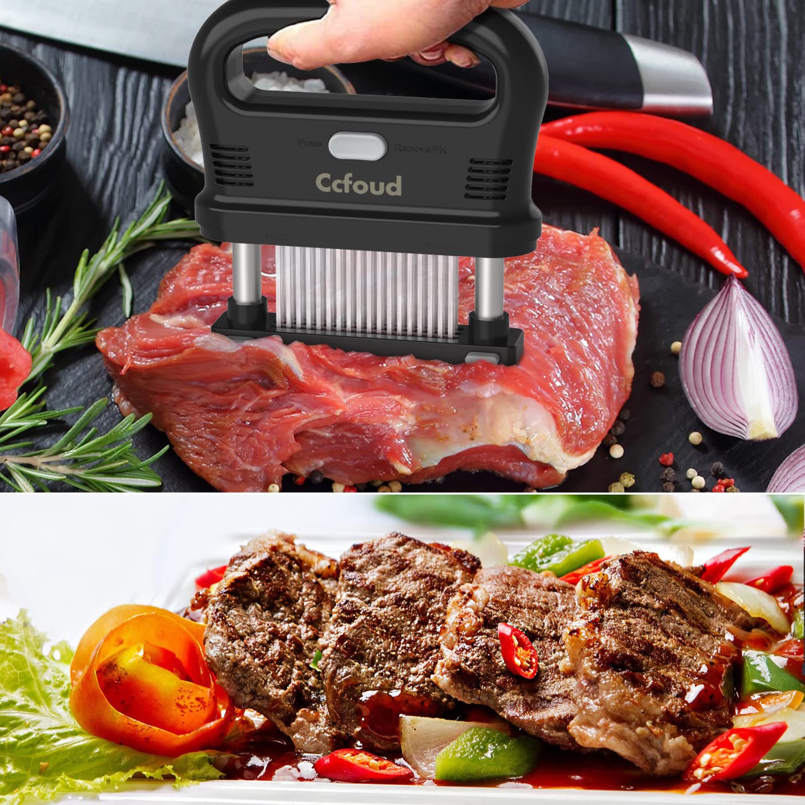 Attendrisseur De Viande, Maillet Propre Marteau à Viande Lames En Acier Inoxydable R Traction S Re Pour C Telette De Porc Pour Steak Pour Boeuf Noir pour ramollir la viande pour cuisiner une grande variété de plats. ✓ Il se compose de lames-aiguilles tranchantes en acier inoxydable qui... Outil Cuisine Professionnel AOMGD Lot De 2 Attendrisseurs De Viande Professionnels - Gadgets De Cuisine Jacquard - 21 Lames En Acier Inoxydable - Attendrisseur De Viande - Idéal Pour Attendrir, Barbecue, Marinade Et Maximiseur Lames Acier Inoxydable Viande Avec un design compact et léger, vous pouvez le tenir confortablement dans votre paume, sans fatiguer les muscles de votre poignet. Ils permettent également à la chaleur de pénétrer plus rapidement pour réduire le temps de cuisson jusqu'à 40 %. DRE-Attendrisseur de Viande, Attendrisseur à viande manuel à 48 lames en Acier Inoxydable pour attendrir le steak de boeuf. Prix de comparaison. 45,76 €. 25,42... Réduisez la marinade et le temps de cuisson : ces minuscules canaux dans la viande permettent aux marinades d'être complètement absorbées dans la viande en seulement 5 minutes environ. Moins de temps de cuisson signifie moins de perte de saveurs naturelles et de jus. Aiguille tranchante : aiguille tranchante en acier inoxydable fabriquée par cet attendrisseur de viande et facile pour marteler le poulet, le steak, le bœuf et d'autres morceaux de viande. Bon outil de cuisson : cet attendrisseur améliorera la texture et le goût de la volaille, du poisson ou du bœuf, et permet à la marinade d'absorber plus rapidement dans la viande, créant des résultats plus savoureux et plus juteux, tout en accélérant le temps de cuisson.