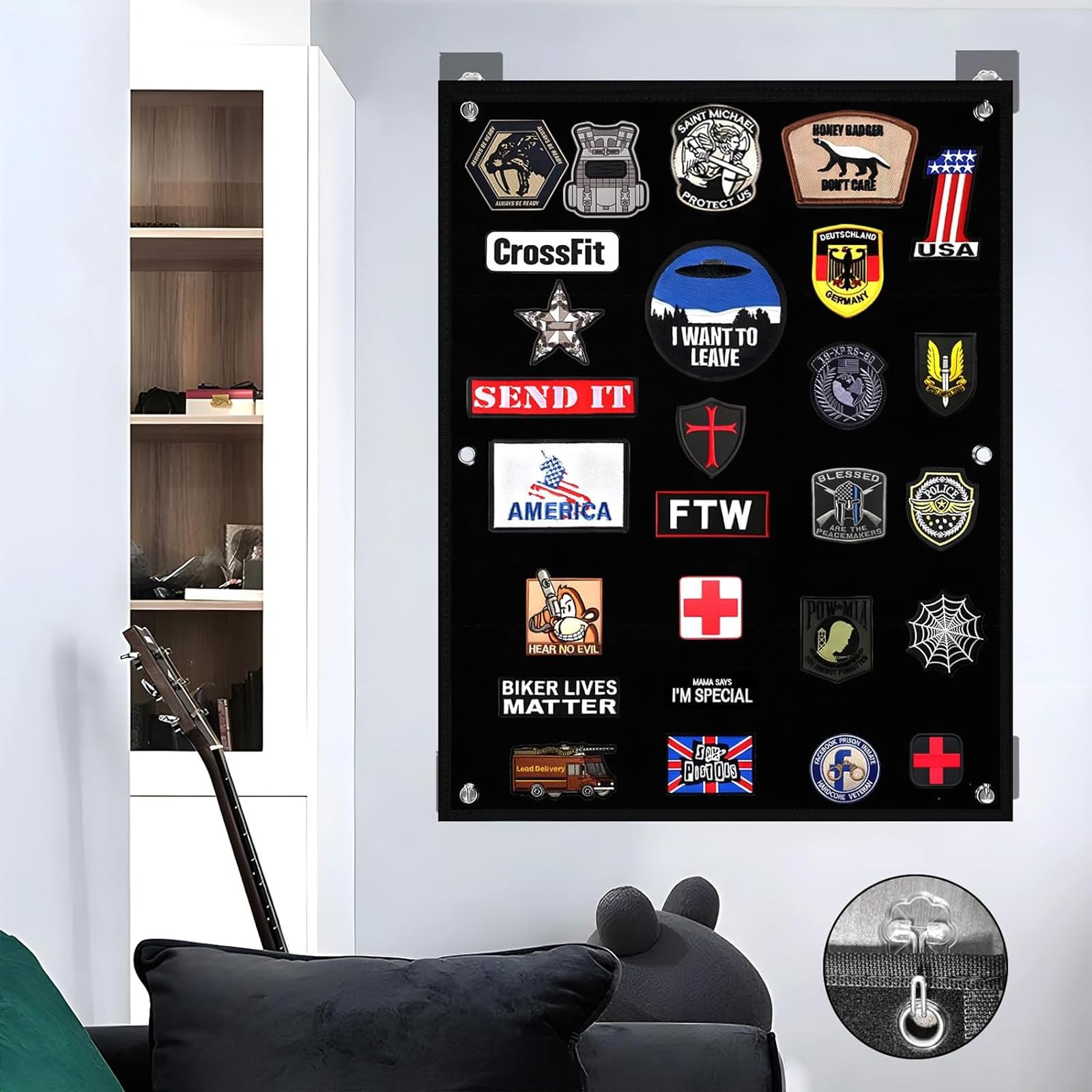Ce panneau velcro noir est parfait pour exposer vos patchs et badges ! Dimensions 70x110cm, avec œillets pour accrocher facilement. Léger, pliable pour le... Possibilités de suspension polyvalentes : utilisation flexible : peut être plié ou accroché - sur les murs, les portes, les fenêtres ou partout où vous souhaitez présenter votre collection de patchs. Remarque : seule la bande d'affichage Velcro est incluse - Les patchs ne sont pas inclus dans la livraison ! Velcro Pour Patch AOUTACC 84 X70cm Panneau De Brassage Tactique Militaire Avec Panneau De Correction De Moral, Crochet Et Boucle(Noir,84 * 70cm Tableau Velcro Pour écusson Pour Mur Idéal pour une utilisation fréquente Patchs de suspension - Panneau velcro - Panneau de fixation - Panneau... Matériaux de haute qualité pour une durabilité maximale : face avant en polaire douce pour une fixation facile des patchs Velcro + dos Oxford 600D durable avec œillets métalliques antirouille., Durable et robuste AOUTACC Panneau de support d'écusson militaire tactique Panneau d