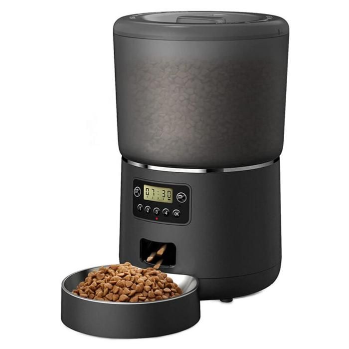 Spécifications Matériel : ABS + acier inoxydable Taille du Paquet : 29×19×19 cm Poids : 1450g Contenu du colis 1 x Distributeur de Croquettes pour Chat 1 x Brosse de nettoyage 1 x Sac absorbant l'humidité 1 x Câble USB 1 x Adaptateur DC 1 x Manuel de l'utilisateur Mode d'emploi non distributeur croquette chien Balimo 4L Distributeur de Croquettes... Chaque portion pèse environ 8 à 10 g. Scellé contre l'humidité pour garder les aliments pour animaux frais. Distributeur étanche USB/piles APETDOLA Distributeur Croquettes Chat Automatique, 5L Distributeur Gamelle Automatique Avec Minuteur 【2】Cette distributeur de croquettes convient aux aliments secs pour animaux de compagnie avec un diamètre de particules de 3 à 8 mm. Description du produit Adaptez la fréquence des repas à votre animal de compagnie bien-aimé pour éviter de trop manger et développer de bonnes habitudes alimentaires. Convient pour nourrir les chats et les petits chiens. Vous pouvez définir de manière flexible la taille du repas en fonction des besoins de votre animal 【3】Notre distributeur de croquettes a une grande capacité de 4 L, ce qui est suffisant pour contenir environ 1,4 kg de nourriture pour chat. Le cadre des repas est flexible et des plans d’alimentation saine peuvent être élaborés pour les animaux de différents âges. Deux modes d'alimentation, choix flexible. Convient pour nourrir les chats et les petits chiens. Le manuel multilingue inclus vous guidera sur la façon de le configurer, le rendant très facile à utiliser Caractéristiques Grande capacité de 4 L, peut contenir plus de nourriture pour chat. 【4】La distributeur de croquettes de compagnie est fabriquée en ABS de qualité alimentaire et en acier inoxydable 304, avec un couvercle étanche à l'humidité sur le dessus, ce qui peut garder les aliments secs frais dans une certaine mesure Notre sélection de distributeurs de croquettes automatiques
