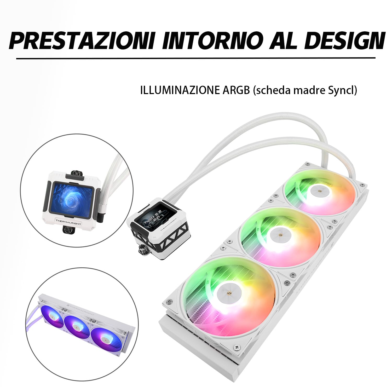 Watercooling AIO 360 TR FW PRO 360 ARGB Blanc AIO Cooler,Écran LCD IPS Avec Ventilateurs 120mm PWM Haute Performance Le moniteur à écran carré LCD IPS d’une résolution de 320 * 320 reproduit avec précision les couleurs, a une stabilité d’angle de vision plus réaliste et peut être librement personnalisé en fonction de l’écran affiché Watercooling Thermalright Watercooler TR FW PRO 360 ARGB Blanc - Écran LCD IPS 2.73 - Compatible AMD/Intel Watercooling 360 Grâce à la coopération de la pompe à eau et à la vitesse élevée du ventilateur, il est possible de s’assurer que le refroidisseur refroidit le processeur pendant une longue période et de manière excellente. Thermalright FW PRO 360 ARGB Blanc AIO Refroidisseur liquide pour processeur, écran LCD IPS avec résolution 320 x 320, pour AM4/AM5/Intel LGA1700/1851, écran LCD absorbant magnétique pour images : : High-techÀ propos de cet article [Paramètres du radiateur refroidi à l'eau] La taille du radiateur refroidi à l'eau est de 397 x 120 x 52 mm, répartiteur froid Si vous avez des questions, veuillez contacter le service client du magasin. [Aspiration magnétique écran LCD amovible] La pompe à eau du refroidisseur refroidi à l’eau est une nouvelle génération de système de pompe à eau, qui améliore non seulement l’efficacité de l’absorption de chaleur, mais réduit également le bruit de fonctionnement. Contrairement aux pompes à eau ordinaires, la pompe à eau est un nouvel écran LCD IPS, qui peut prendre en charge diverses commutations d’images statiques et dynamiques, et prendre en charge le système pour diffuser l’affichage de l’écran (sous réserve du logiciel), ce qui augmente l’intérêt visuel en même temps que la dissipation thermique élevée. [Excellente combinaison de refroidissement] Le refroidisseur d’eau de refroidissement par processeur adopte un en-tête de refroidissement par eau avec un écran LCD amovible 360 spécification entièrement blanchissant nano-peint de tuyau d’eau de protection compilé de tuyau d’eau de protection de configuration standard 120mm PWM ventilateur de pression d’air, qui est dédié à la création d’un refroidisseur d’eau tout-en-un avec un refroidissement élevé, une durée de vie élevée, un haut niveau de sophistication et une faible évaporation.