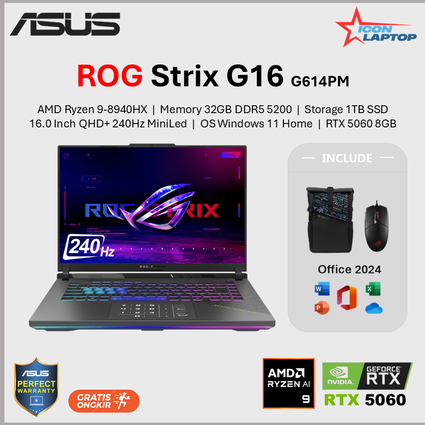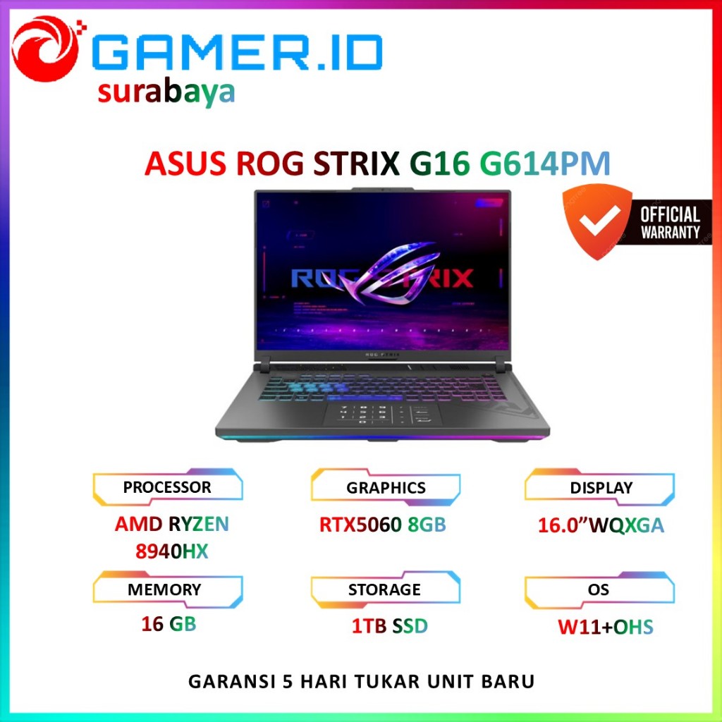 Grâce à cette carte graphique de pointe, vous bénéficierez de performances graphiques exceptionnelles, de visuels détaillés et d'une fluidité incroyable, vous permettant de vivre chaque jeu comme jamais auparavant. Que vous soyez un joueur passionné ou un créateur de contenu, le ROG Strix G16 G614PM-RV092W (STRIX-G16-G614PM-RV092W) est le choix idéal pour vous accompagner dans toutes vos aventures. Asus Strix G16 Gaming Laptop ASUS ROG Strix G16 Ordinateur Portable Gaming, écran 16" FHD IPS 165Hz, Intel Core I7-13650HX, 32 Go De RAM DDR5, SSD 1 To, NVIDIA GeForce RTX 4060, Wi-FI 6E, Clavier Anglais QWERTY Asus Rog Strix G614 ASUS ROG STRIX G16 G614PM-RV066W (RYZEN 9 / RTX 5060 / 32 GO / 1 TO... Avec ses 16 cœurs et 32 threads, ce processeur garantit une expérience de jeu et de multitâche fluide et réactive. Le ROG Strix G16 G614PM-RV092W (STRIX-G16-G614PM-RV092W) est un ordinateur portable gaming puissant et polyvalent, conçu pour offrir une expérience de jeu immersive et des performances exceptionnelles. Son design élégant et robuste en Eclipse Gray, avec un clavier rétroéclairé 4-Zone RGB, en fait un ordinateur portable gaming à la fois performant et esthétique. Grâce à sa conception thermique avancée, ce système de refroidissement assure une performance stable et fiable, vous permettant de jouer pendant des heures sans surchauffe. Profitez de performances exceptionnelles pour vos jeux, vos applications créatives et vos tâches les plus exigeantes, vous permettant de rester productif et de vous divertir sans compromis. Équipé du processeur AMD Ryzen™ 9 8940HX et de la carte graphique NVIDIA® GeForce RTX™ 5060, il offre une puissance de calcul impressionnante pour les jeux les plus exigeants et les applications créatives. De plus, il dispose de nombreux ports, dont un port RJ45, deux ports USB 4 Type-C (avec support DisplayPort et G-SYNC), et deux ports USB 3., 2 Gen 2 Type-A, vous permettant de connecter facilement tous vos périphériques et accessoires. Le ROG Strix G16 G614PM-RV092W (STRIX-G16-G614PM-RV092W) est également doté du système de refroidissement intelligent ROG, qui maintient les températures basses même lors des sessions de jeu les plus intenses, assurant une performance stable et fiable. Découvrez le test complet de l'Asus ROG Strix G16 : un laptop alliant puissance, design et efficacité pour les gamers exigeants Le ROG Strix G16 G614PM-RV092W (STRIX-G16-G614PM-RV092W) est doté de la carte graphique NVIDIA GeForce RTX 5060 Laptop GPU avec 8GB de mémoire GDDR7, offrant des graphismes époustouflants et une immersion totale dans vos jeux préférés. Le ROG Strix G16 G614PM-RV092W (STRIX-G16-G614PM-RV092W) est doté du système de refroidissement intelligent ROG, qui maintient les températures basses même lors des sessions de jeu les plus intenses. 2 de 1 To, le ROG Strix G16 G614PM-RV092W (STRIX-G16-G614PM-RV092W) offre un stockage ultra-rapide pour vos jeux, applications et fichiers, vous permettant de démarrer vos jeux en un clin d'œil et de travailler de manière plus efficace. ASUS ROG STRIX G16 G614PM-RV092W (RYZEN 9 / RTX 4060 / 16 GO / 1 TO