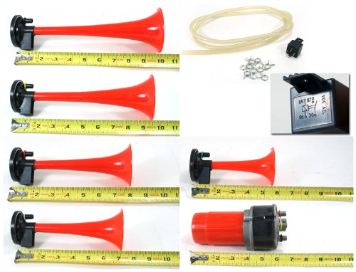 Trompette Voiture AUTOZENSATION "La Cucaracha" Musical Air Horn + Compressor Trompette Tracteur 125 dB Super haut-parleur quip de 3 haut-parleurs, il peut mettre jusqu' 125 dB de son, vous donnant l'attention dont vous avez besoin sur la route ou dans des situations d'urgence, en gardant les animaux loin de la route et en avertissant les pi tons et autres conducteurs Car Horn HornBlasters La Cucaracha Musical Air Horn - 127.7dB Fiesta On Wheels La Cucaracha Musical Horn Spécification: Type d'article: Musique Air Horn Voltage: 12v Current: 15a Decibel: 125 dB Musique: La Cucaracha (The Cockroach) Fitration: Universal, comme pour le bateau de train de camion KIT TROMPETTE CORNE en métal à air 12 V ton musical 2 cornes ou... Et : les trois haut-parleurs et le compresseur sont faits de matériaux ABS, et le volume fort ne causera pas de dommage aux haut-parleurs, comme la fissuration, et aura une longue durée de vie. 125 dB Super haut-parleur: équipé de 3 haut-parleurs, il peut émettre jusqu'à 125 dB de son, vous donnant l'attention dont vous avez besoin sur la route ou dans des situations d'urgence, en gardant les animaux loin de la route et en avertissant les piétons et autres conducteurs. Compatibilité large: le compresseur lourd 12V peut être installé sur n'importe quel véhicule 12V, adapté aux petites voitures, camions, bus, navires, etc. Description du produit 125 DB 3 Kit de Corne D'air de Trompette, La Cucaracha Musical Sound Horn avec Compresseur pour Bateau de Voiture, Matériau ABS, Ajustement Universel