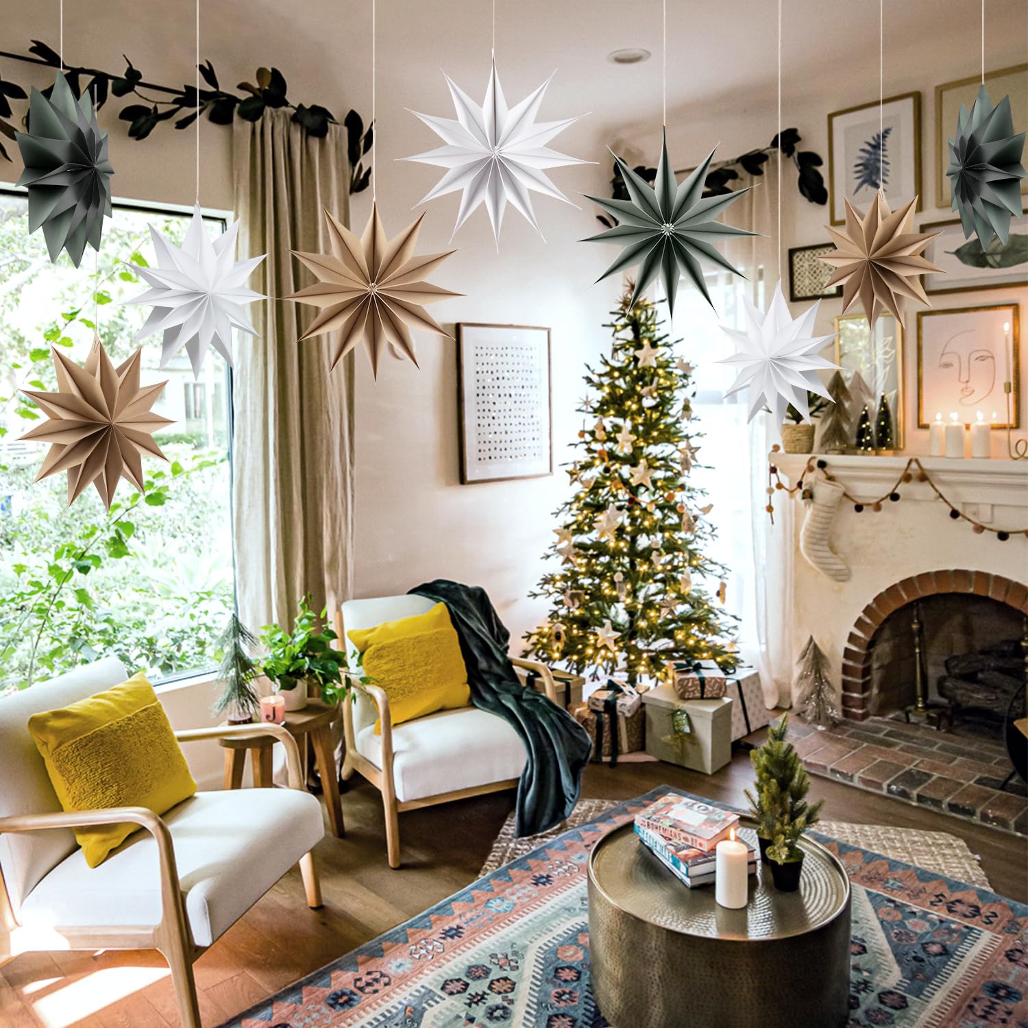 Cette étoile pliante pour décoration de fenêtre de Noël n'est pas seulement un objet de décoration, mais aussi une œuvre d'art. La finition soignée garantit la légèreté et la durabilité du produit. Chaque motif de trous irréguliers est soigneusement conçu et témoigne d'un savoir-faire raffiné. Art origami créatif : cette étoile de Noël illumine l'étoile LED combine l'art traditionnel de l'origami avec la technologie d'éclairage LED moderne, créant une expérience visuelle unique dans votre décoration de Noël. Lorsque la lampe LED est allumée, la lumière brille à travers les motifs perforés et projette des motifs fascinants sur le mur qui assurent une vue agréable et vous offrent un confort et un confort très particuliers. Motif perforé 3D : ce cintre 3 étoiles LED dispose d'un motif perforé 3D avec des formes irrégulières, dont le design ajoute une touche spéciale à l'étoile pliable. étoile Origami 8 Branches 3 Pcs 9 Lanternes En Papier Étoile Pointues 12 Pouces Abat-Jour Suspendu Pour Lumière LED Décoration De Mariage Anniversaire, Or Etoile Noel Papier Etoile 3D a Suspendre Argent, decoration salle pas cher Matériau en papier et lumières LED intégrées : cette étoile de Noël en papier illuminée a été soigneusement fabriquée à partir de papier écologique de haute qualité. Il combine la technologie traditionnelle origami avec la technologie d'éclairage LED moderne et émet une lumière chaude la nuit qui ajoute une chaleur et un éclat particuliers à votre décoration de Noël. Utilisation polyvalente : cette étoile intérieure de décoration de Noël pour fenêtre de Noël est le choix parfait pour votre décoration de salon, décoration de Noël, décoration de fête, décoration de centre commercial et bien d'autres occasions. Lot De 3 Lanternes En Papier 3D En Forme D'Étoiles - 30Cm - À Suspendre... En quelques minutes, vous pouvez mettre en place toute la décoration et profiter de la joie de la décoration de Noël sans grand effort. Grâce à son design pliable, il est pratique à transporter et à ranger. L'atmosphère détendue, confortable et romantique qu'il crée ajoute une touche élégante à votre décoration de fête et rend vos fêtes encore plus charmantes. Mokyler Lot de 2 couronnes de Noël lumineuses à suspendre pour porte d... Facile à utiliser et design pliable : l'utilisation de cette étoile de Noël 3D est extrêmement simple et ne nécessite aucune installation compliquée. Vous pouvez l'accrocher n'importe où selon vos envies et ajouter ainsi un éclat supplémentaire à vos fêtes. Design pliable pratique : le design pliable de cette décoration d'étoile LED de Noël rend le montage et le démontage très faciles et rapides.