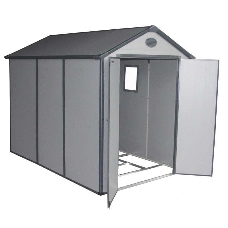 Abri Avec Double Porte Fenêtre Jôbu Abri De Jardin Résine 6,99m² Double Porte Verrouillable Anthracite + Kit Fondation | Leroy Merlin Abris De Jardin Metal Canopia by Palram Abri de jardin en Kit Yukon 9m², Cadre en aluminium, panneaux en polycarbonate, Gris L'abri de jardin Jôbu de 5,32m² se compose d'une structure robuste en acier galvanisé à chaud, recouverte de panneaux solides en polypropylène. Les panneaux... Le kit de fondation inclus permet une installation flexible, avec ou sans dalle béton. L'entretien est minimal, nécessitant simplement un nettoyage à l'eau ou solution savonneuse. CONSTRUCTION ROBUSTE: Abri de jardin en polypropylène avec armature en acier galvanisé, parois de 12mm d'épaisseur et surface de 5,32m², idéal pour le rangement extérieur. Découvrez l'abri de jardin Jôbu en résine anthracite, une solution de rangement extérieur pratique de 5,32m². DIMENSIONS PRATIQUES: Structure de 190x280cm avec hauteur de faîte de 226cm, double porte spacieuse de 116x180cm avec seuil incliné pour un accès facile. VENTILATION OPTIMALE: Équipé d'une grille d'aération sous le pignon avant et d'une fenêtre latérale en polycarbonate pour une luminosité naturelle. ENTRETIEN MINIMAL: Nettoyage simple à l'eau ou solution savonneuse, matériaux résistants aux intempéries avec garantie de 10 ans. L' abri de jardin en résine offre certains avantages par rapport aux abris de jardin en bois : montage simple par clips, ancrage sans dalle de béton, entretien réduit à un rinçage à l'eau, ne se décolore pas au soleil et ne se déforme pas avec le temps... Il est solide et durable, renforcé par des structures métalliques. Pour s'intégrer au jardin, il imite parfois même le bois sur...