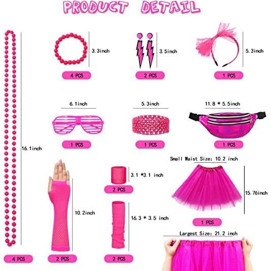 Deguisement Annee 80 Peirich Déguisement Années 80 - 29 Costume Halloween Thème Rétro WELLCHY Déguiseent Année 80 Accessoire Fee, Vêteents Années 80 Ensemble Tutu T-shirt Accessoires Mode année 80, les inspirations et les looks actuellement en vogue 👗80er 90er outfit Damen : 80er 90er retro party set contient 1 t-shirt, 1 tutu, 1 sac ventral, 4 collier, 4 bracelet, 1 boucles d'oreilles, 1 paire de chauffe-jambes, 1 gants en filet et 1 bandeau. WELLCHY 10PCS Déguiseent Chat Fille, Chat Cosplay Set avec Tutu Serre... tous les accessoires des années 80 sont adaptés à la plupart des filles. 👗Matériel premium : le costume de fête à thème des années 80 90 avec accessoires est fait de matériau doux et confortable, honnêtement agréable à mettre, il est durable et peut être utilisé plusieurs fois.