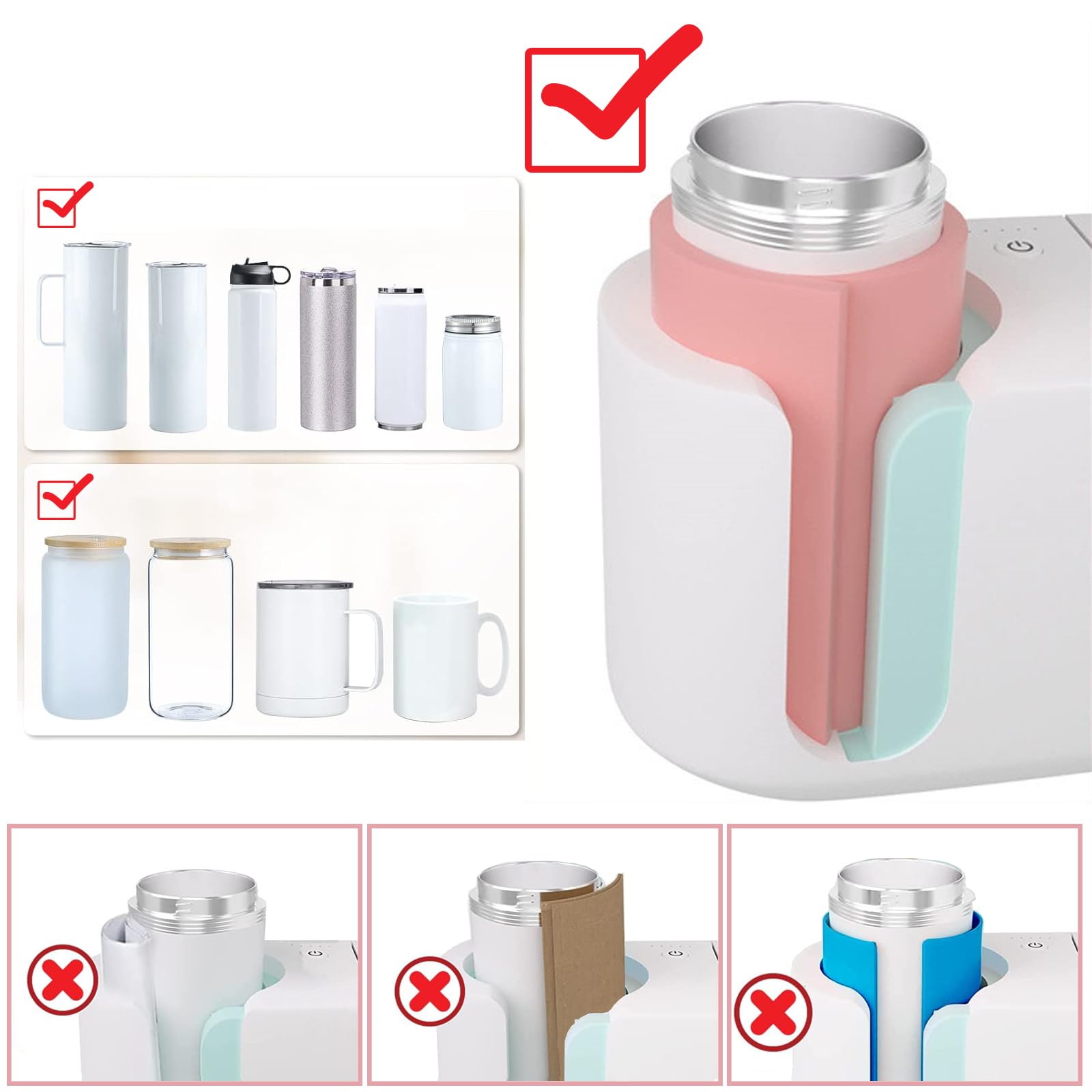 Craft Express Elite Pro Max Rose 2 en 1 tasse et presse à gobelet Rose... Vous pouvez vous amuser à le faire vous-même et laisser le porte-tasse vous aider à imprimer n'importe quel motif ou imprimer la tasse que vous voulez pour la rendre plus unique. Contenu de l'emballage : 3 enveloppes de tasse en silicone pour sublimation, répondent à vos besoins quotidiens. Tasse A Sublimation Accessoire Impression Tasses Lot De 4 Enveloppes Silicone Pour - Vert - 240x110mm Sublimation Tasses 325ml Accessoire Impression Tasse Personnalisée Ce manchon en silicone est spécialement conçu pour la machine de sublimation de l'imprimante de tasses et s'adapte parfaitement à la tasse sans laisser d'espaces pouvant entraîner un chauffage inégal. Les enveloppes de tasse mesurent environ 25 x 12 cm, et elles sont en 3 épaisseurs : 0,15 cm, 0,12 pouces/0,3 cm et 0,16 pouces/0,4 cm. Silicone résistant à la chaleur. Résistance à haute température et réutilisable. Facile à utiliser Description :Ce manchon en silicone est spécialement conçu pour la machine à sublimation de l'imprimante de tasses et s'adapte parfaitement à la tasse sans laisser d'espaces pouvant entraîner un chauffage inégal. ENVELOPPES DE TASSE en cuir PU en liège résistant à la chaleur pour