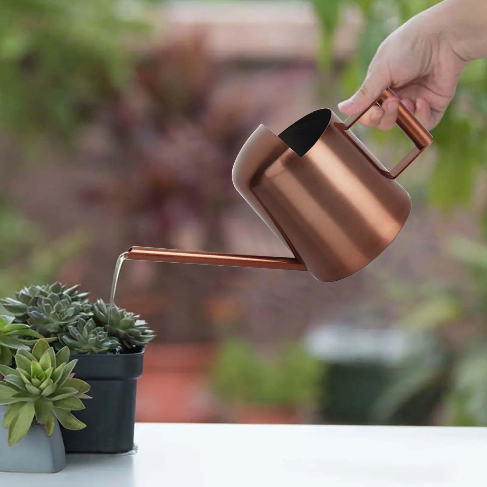[Capacité de 300ml pour un arrosage efficace] L'arrosoir de jardin en métal a une capacité de 300 ml. Il peut également arroser les branches et les feuilles. Arrosoir Décoratif Cuivré Accessoire Plantes Intérieur Arrosoir Miniature 300 Ml - Acier Inoxydable Bronze - Long Bec Précision - Plantes Intérieur Accessoire Plantes Succulentes Mini Arrosoir Plante Interieur Design élégant: Arrosoir plante interieur avec une poignée ergonomique, confortable à tenir, adapté aux enfants. Arrosage de Précision : Cet arrosoir en acier inoxydable est doté de buses fines qui peuvent pénétrer profondément dans les racines des plantes pour un arrosage précis, empêchant l' de couler sur les feuilles et de salir... [Matériau en acier inoxydable de qualité supérieure] Cet arrosoir plante interieur est fabriqué en acier inoxydable de haute qualité avec une construction solide. Il mesure 8,5 x 9,7 cm et a une capacité de 300 ml, qui vous permettra d'arroser toutes vos plantes d'intérieur. [Élégant arrosoir avec bec allongé] Cet arrosoir plante interieur est conçu avec un bec long qui permet d'arroser facilement toutes vos plantes en pot, en particulier les plantes d'intérieur, les petites plantes de bureau, les plantes succulentes, les petites plantes en pot et certains mini-paysages. Il peut être utilisé comme une simple décoration ou un outil de jardinage pratique, et il est également parfait pour les enfants lors d'activités de jardinage. Il a une forme élégante et une couleur vintage, vous n'avez pas besoin de vous soucier de la décoloration. Sa longue bec courbé est également idéale pour prendre soin des plantes suspendues ou fixées au mur. Il est doté d'une poignée facile à tenir et est très pratique pour arroser vos mini-plantes. Arrosoir en acier inoxydable : Cet arrosoir plante interieur est en acier inoxydable, qui le rend solide, et résistant à la rouille. Matériau. Acier inoxydable · Couleur. Cuivre · Marque. Sutowe · Capacité. 300 Millilitres · Fabricant. Sutowe [Mini Arrosoir] Mesurant 8,5 x 9,7 cm, ce minuscule arrosoir plante interieur est compact et permet de contrôler facilement la quantité d'eau dispensée, parfait pour arroser les petites plantes en pot. Il prendra soin des petites plantes en pot de manière efficace et est très pratique. Avec une capacité de 300 ml, vous pourrez arroser toutes vos petites plantes en pot d'intérieur. Aço Inoxidável Flor Rega Pode Com Bico Longo 900ML Lidar Com Madeira Pequena Cha