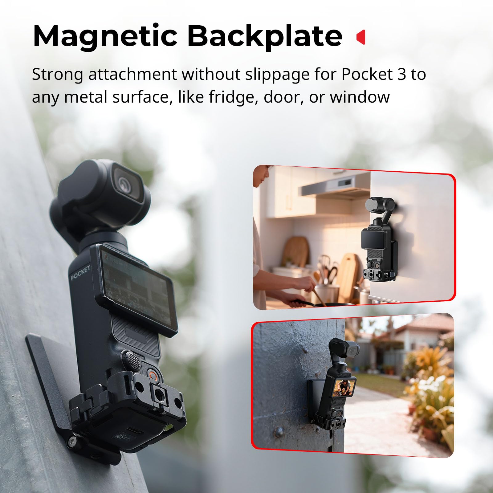 Tomat Pocket 3 Support magnétique pour DJI Osmo Pocket 3/2 pour Il s'agit d'une cage polyvalente spécialement conçue pour DJI Osmo Pocket 3., La cage dispose d'une fermeture rapide pour une installation rapide et sans outil. Support Magnétique Pocket 3 Accessoire Vlog Filmage Support Magnétique DJI Osmo Pocket 3 - Griffe Froide Incluse - Alliage Aluminium - Flymile Accessoire Vidéo Magnétique Cage DJI Osmo Pocket 3 Installation rapide et facile : il suffit de libérer la boucle du support de caméra sur le côté, de le glisser dans votre appareil photo, de le verrouiller et de le fixer à n'importe quelle surface magnétique Le support SmallRig pour DJI Osmo Pocket 3 5581 est un accessoire de montage dédié conçu pour améliorer la polyvalence de votre Pocket 3. Son montage réversible permet une orientation flexible de l'écran pour un cadrage aisé
