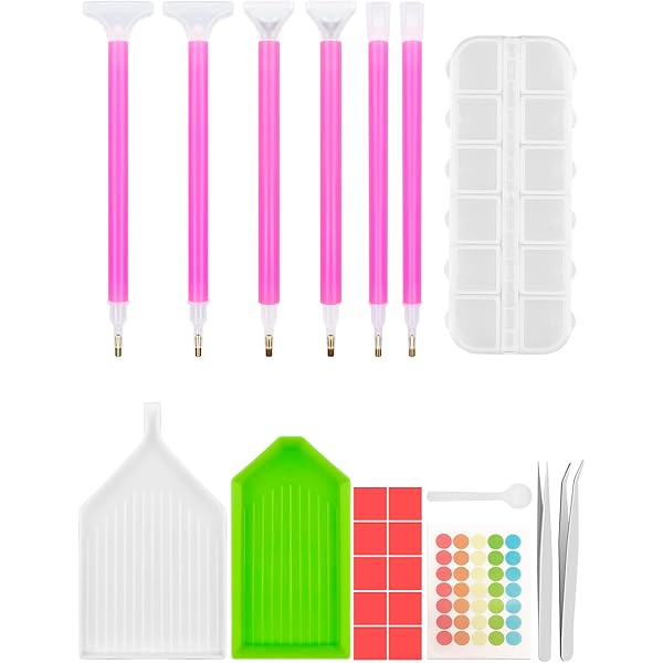 Kit Diamond Painting Accessoires Outils Boîte de Broderie de DIY Ensemble d'Outils Professionnels Diamond Painting 13 Pièces Accessoire... Tools Pen Accessoires De Diamond Painting, Outils De Peinture Diamant, 76Pcs Pen Dispenser 3, Vous pouvez l'offrir en cadeau à votre enfant,pour vous aider à passer du bon temps entre parents et enfants,une belle peinture au diamant ne peut pas être séparée d'un bon outil,laissez-le vous aider à achever le chef-d'œuvre. 28x Diamond Painting Accessoires -- Votre kit diamond painting, idéal pour débutants et experts, ce kit répond à tous vos besoins en matière de peinture au diamant, comprenant 1 boîte de rangement, 6 stylo peinture diamant, 10 papier diamond painting, 4 plateaux, 1 cuillère, 1 couteau à graver, 1 correcteur, 2 pinces courbées, 1 autocollant et 12 tampons en argile Diamond Painting Outils,25 Pièces Outils De Peinture Diamant,Diamond... Specification Brand: Prebarfun Quantity: 28 pièces Material: Plastique Le paquet comprend: 1 organiseur diamant, 6 stylos à colle, 10 feuilles de papier anti-adhésif, 2 plateaux, 1 cuillère, 2 pinces courbes, 1 couteau à sculpter, 1 grand correcteur, 1 autocollant et 12 morceaux d'argile. 10 Papier de Démoulage Diamant -- Nos feuilles de séparation réutilisables révèlent simplement la zone que vous voulez peindre tout en couvrant le reste en toute sécurité, en plaçant précisément les diamants zone par zone et en les empêchant de tomber sans faire de dégâts 12 Organisateur de Diamond -- Organisez facilement vos diamants, cette boîte robuste comporte 12 compartiments transparents pour faciliter le tri des couleurs et un couvercle hermétique pour sécuriser chaque perle 6 Stylo Peinture Diamant -- Équipés de différents stylos à bille collants en fonction de vos besoins, vous pouvez passer d'un stylo à bille diamanté 3/6/9 à l'autre, ce qui vous permet non seulement de dessiner finement, mais aussi de terminer votre dessin rapidement pour que votre œuvre d'art soit plus belle