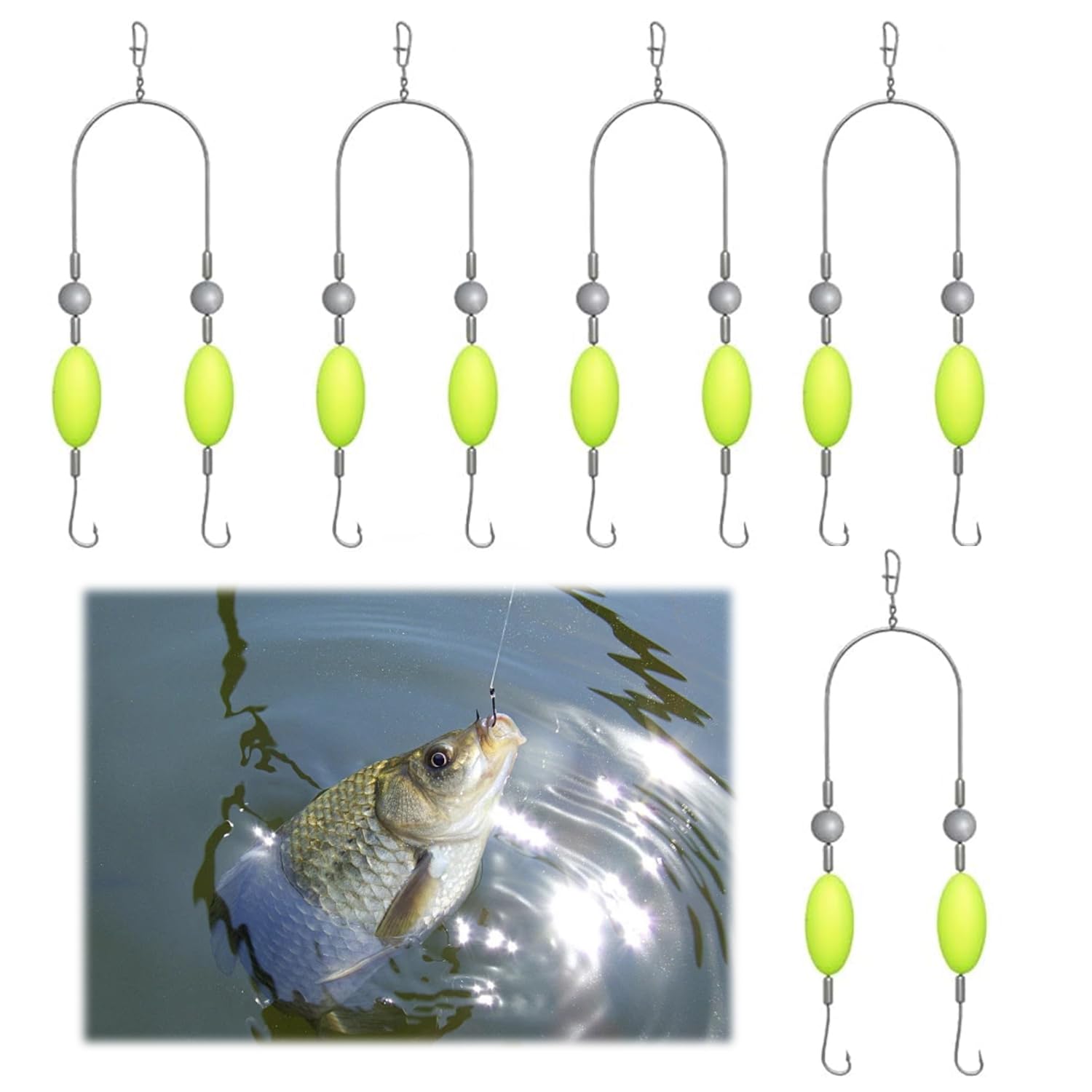 WUBAYI Double crochet : votre partenaire fiable pour une pêche à la carpe réussie. Extrêmement robuste : fabriqué à partir d'un matériau solide résistant à l'eau salée pour résister aux contraintes des poissons capitaux et à une utilisation répétée. Combiné à la présentation naturelle grâce au mini flotteur intégré et aux perles de poisson attrayantes, votre appât sera irrésistible pour les carpes curieuses et autres poissons paisibles. Principaux avantages en un coup d'œil : design anti-enchevêtrement intelligent : minimise les enchevêtrements gênants des crochets dans les herbes ou les sols boueux. Votre lot de 10 leurres WUBAYI comprend : 5 hameçons doubles pré-montés avec équipement anti-enchevêtrement (10 crochets au total), 5 mini flotteurs, 5 perles de poisson. Un accessoire de pêche sur lequel vous pouvez compter. Leurres Double Crochet Flotteur JSHANMEI Lot De 217 Accessoires De Pêche à La Carpe - Boîte De Matériel Anti -Enchevêtrement, Aligneur De Ligne D'Appât, Butées à Vis, Hameçon, Poids En Fer Kit Pêche Carpe Débutant Hameçons de pêche 10 hameçons dieu, crochets doubles, crochets anti Idéal également pour les débutants qui veulent un sentiment d'accomplissement rapide. Le lot de 10 leurres à double crochet anti-enchevêtrement de WUBAYI est conçu pour rendre votre voyage de pêche plus efficace et moins frustré, en particulier lors de la pêche à la carpe ciblée avec la méthode populaire Reverse-Bottom. Système de bottom inversé optimisé : spécialement conçu pour le sol inversé. Lot de 65 hameçons de pêche avec 20 vis 40 hameçons de pêche et 5... Il suffit de le brancher à votre ligne principale et à l'indicateur de morsure, d'appliquer l'appât, de l'éjecter, c'est prêt. Pas de montage compliqué nécessaire, parfait pour commencer à pêcher. Accessoire de pêche parfait pour les débutants ambitieux et les professionnels qui pensent pratiquement 217 Pièces-Boîte De Pêche À La Carpe Avec Manchon Anti-Enchevêtrement... Les flotteurs et les perles de poisson créent des mouvements naturels d'appât pour attirer efficacement les poissons. 【Polyvalent pour différentes techniques de pêche】 Idéal pour lancer, pêche de fond ou pêche en flotteur dans les lacs, les rivières ou en mer. Simplicité maximale : pré-assemblé et prêt à l'emploi !