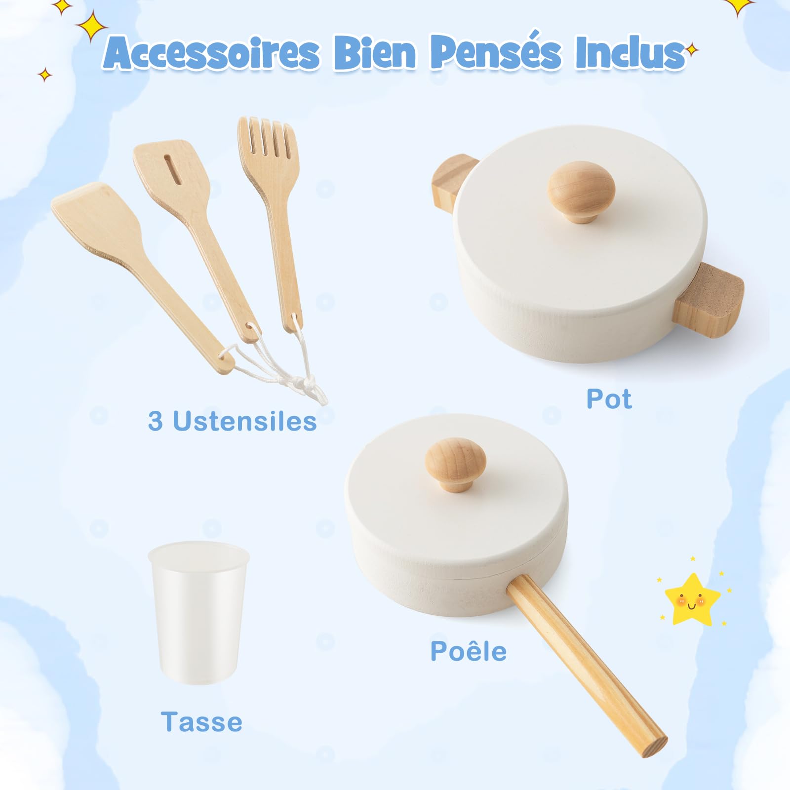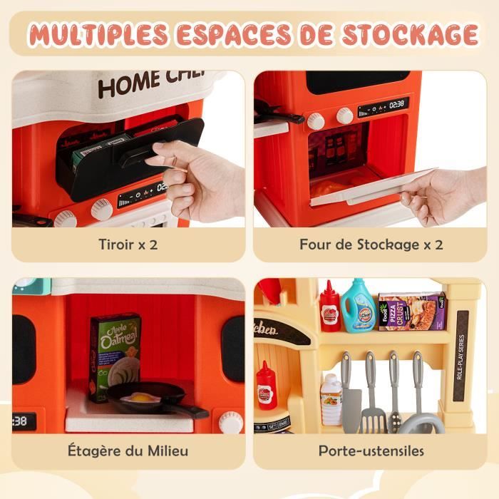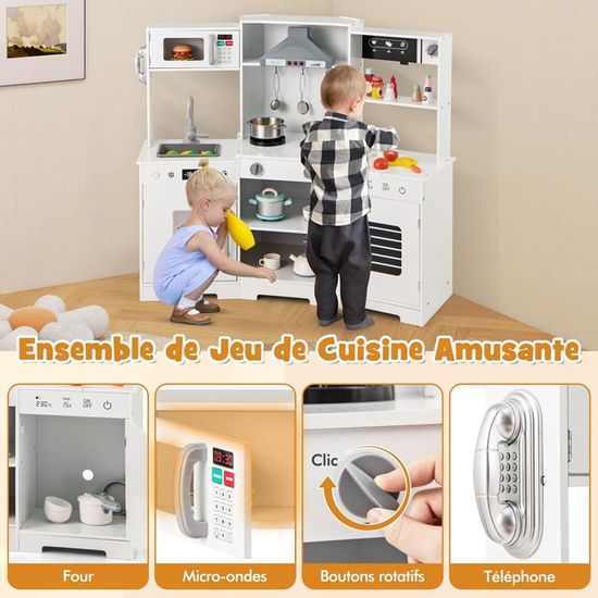 Dinette Enfant COSTWAY Cuisine Enfants - 65 Accessoires, Jouet Dînette, Lumières Et S Jeu D'imitation Cuisine Complète 65 Pièces Bebeboutik - COSTWAY Cuisine de Jeu En Bois pour Enfants 3 Ans , avec... COSTWAY Maison de Jeu pour Enfants 6 en 1 avec Mur d’Escalade Tableau 🎈【Sans danger pour enfants :】Fabriqué en matériau inodore et de haute qualité, cette cuisine est sécurisé et durable. COSTWAY Cuisine Enfants avec Horloge Ludique & Son Réaliste, Jeu de... 🎈【Cadeau parfait:】Grâce au jeu de rôle, les enfants utilisent grandement leur imagination et leur créativité, améliorent leur capacité de communication, de coopération et de pratique. 🎈【Robinet avec eau courante :】Ajoutez simplement de l'eau dans l'évier et allumez le robinet, les enfants peuvent voir l'eau s'écouler et revenir dans l'évier et faire semblant de laver leurs aliments ou leur vaisselle. Et pour ranger ces accessoires, les différents espaces de ce jouet de cuisine jouent leur rôle. 🎈【Effets de cuisine réalistes :】Pour une expérience de cuisson plus réaliste, les poêles peuvent simuler de la vapeur réelle et disposent de sons et de lumières de cuisson réalistes.
