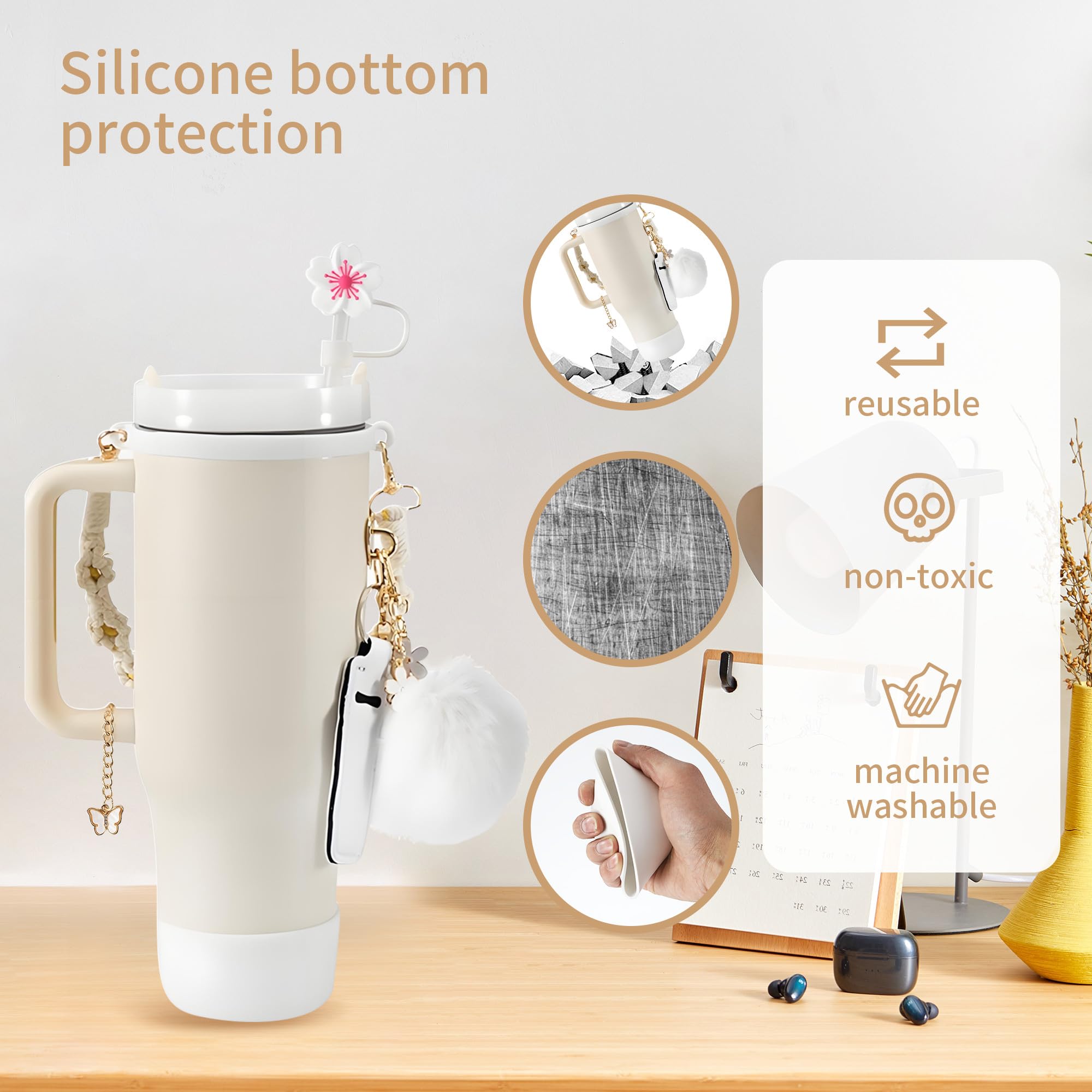 Les déversements gênants ou les pailles contaminées appartiennent au passé. Fabriqué en silicone de qualité alimentaire, métal résistant à la décoloration et matériaux non pelucheux, les accessoires Stanley convainquent par leur durabilité et leur commodité au quotidien. Idéal pour les utilisateurs actifs : intérieur qui apprécient la fonctionnalité et le style, que ce soit pour la randonnée, la salle de sport, le bureau à domicile ou comme idée cadeau durable pour les amateurs de bouteilles d'eau personnalisables. La collection d'accessoires Stanley résout les problèmes typiques : la base en silicone antidérapante protège contre les rayures et les chocs, tandis que les couvercles anti-éclaboussures et les bouchons anti-poussière garantissent une hygiène optimale. Kit Stanley 14 Pcs - Accessoires pour Gourde Quencher avec Sangle de Poignée et Botte en Silicone Grâce aux détails soignés tels que les motifs floraux, les pendentifs moelleux et les éléments décoratifs métalliques, les accessoires Stanley Cup donnent à chaque tasse un look personnel – qu'il soit minimaliste, ludique ou élégant. L'ensemble comprend 4 manchons de paille, 1 poignée de transport avec cordon en coton, 2 bouchons anti-éclaboussures, 2 coques de protection en silicone, 3 porte-clés, 2 autocollants en forme de cœur métalliques et 1 étui à rouge à lèvres. Stanley Gobelet isothere portable de 1,2 l avec poignée et couvercles avec paille en acier... Utilisation polyvalente : le kit d'accessoires réutilisables Stanley s'adapte aux gobelets Stanley de 1,0/H2,0 850 à 1100 ml ainsi que d'autres gobelets. Le kit complet d'accessoires Stanley Cup de 15 pièces pratiques offre tout ce dont vous avez besoin pour une protection optimale et une personnalisation de votre gobelet. Les pièces en silicone flexibles s'adaptent aux gobelets de 850 à 1100 ml (y compris les modèles de 300 g et 600 ml), les couvercles de paille sont optimisés pour un diamètre de 9 à 10 mm. Kit Accessoires Bouteille Kit D'Accessoires Stanley Cup - Sangle, Bottes En Silicone, Couvercle De Paille - Pour Tasses 800 Ml Et 1100 Ml - Quartz Rose Protection Silicone Couvercle Paille Stanley Donne un second souffle à tes produits Stanley 1913. Découvre nos couvercles, pailles, sacs et accessoires de rechange conçus pour que tes gourdes et tumblers restent performants Combinaison riche : vous recevrez 15 accessoires Stanley Cup, dont 4 manchons de paille, 1 bande de poignée de bouteille d'eau, 2 bouchons anti-fuite, 2 étuis de protection, 3 porte-clés, 2 autocollants en métal Love et 1 étui de protection pour rouge à lèvres
