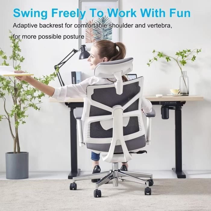 Parfaite pour ceux qui recherchent fraîcheur, fermeté et confort longue durée au quotidien. Une chaise de bureau avec accoudoirs 4D, c’est le choix intelligent pour plus de confort et moins de fatigue au quotidien. 1 Maille haute qualité 2 Coussin ergonomique 3 Chaise certifiée Ils soulagent efficacement les épaules, la nuque et les poignets, favorisent une posture saine et préviennent les tensions ainsi que les douleurs liées à une position prolongée. Fauteuil Bureau Ergonomique Fauteuil Bureau 200Kg,Accoudoirs 4D,Dossier Et Profondeur D'Assise Chaise Accoudoirs 4D Réglables Idéal pour le télétravail ou le gaming : vos bras bénéficient d’un soutien optimal, que ce soit pour taper, téléphoner ou se détendre. Particulièrement bénéfique pour les personnes de grande taille : l’assise allongée assure un soutien là où les chaises classiques font souvent défaut. ✅𝐒𝐞𝐫𝐯𝐢𝐜𝐞 𝐜𝐥𝐢𝐞𝐧𝐭 𝐩𝐫𝐨𝐟𝐞𝐬𝐬𝐢𝐨𝐧𝐧𝐞𝐥 : Soyez assuré que nos chaises de bureau ont passé avec succès tous les tests requis. Melokea est une marque spécialisée dans les chaises ergonomiques adaptées aux morphologies européennes. Chaise de Bureau Ergonomique, Accoudoirs 4D, Siège Réglable en ✅𝐀𝐬𝐬𝐢𝐬𝐞 𝐫é𝐠𝐥𝐚𝐛𝐥𝐞 𝐞𝐧 𝐩𝐫𝐨𝐟𝐨𝐧𝐝𝐞𝐮𝐫, 𝐢𝐝é𝐚𝐥𝐞 𝐩𝐨𝐮𝐫 𝐭𝐨𝐮𝐭𝐞𝐬 𝐥𝐞𝐬 𝐭𝐚𝐢𝐥𝐥𝐞𝐬: Grâce à son assise réglable en profondeur jusqu’à 5 cm, cette chaise permet à chacun de trouver la position la plus confortable, quelle que soit sa taille. Cela réduit la pression, favorise une bonne circulation sanguine et prévient la fatigue et les douleurs. Nous proposons un service après-vente de 5 ans, bien au-delà de la norme du secteur. ✅𝐂𝐨𝐧𝐜𝐞𝐩𝐭𝐢𝐨𝐧 𝟏𝟎𝟎 % 𝐞𝐧 𝐌𝐚𝐢𝐥𝐥𝐞: L’ensemble de la structure de la chaise de bureau est recouvert d’un tissu en maille de haute qualité – de l’assise au dossier en passant par l’appui-tête – offrant ainsi une excellente respirabilité pour un confort durable sans accumulation de chaleur. ELOKEA Chaise de Bureau 200KG, Fauteuil de Bureau Ergonoique avec... Fauteuil de bureau avec accoudoirs BIGZZIA, chaise de bureau... Le bassin et les cuisses restent bien alignés dans une posture naturelle, même après de longues heures d’utilisation. Cela réduit les points de pression et prévient efficacement les douleurs dorsales – idéal pour un travail prolongé et une assise confortable. Dans le même temps, le soutien lombaire spécial avec une adaptation dynamique de 30° épouse automatiquement la posture assise et maintient le bas du dos dans une position saine. ③ Hauteur d’assise ajustable jusqu’à 10 cm pour s’adapter à différents bureaux. ✅𝐑𝐨𝐮𝐞𝐬 𝐞𝐧 𝐜𝐚𝐨𝐮𝐭𝐜𝐡𝐨𝐮𝐜 𝐬𝐢𝐥𝐞𝐧𝐜𝐢𝐞𝐮𝐬𝐞𝐬, 𝐚𝐝𝐚𝐩𝐭é𝐞𝐬 à 𝐭𝐨𝐮𝐬 𝐥𝐞𝐬 𝐬𝐨𝐥𝐬 : Les roues de ce fauteuil de bureau ergonomique sont fabriquées en caoutchouc de haute qualité, n’abîment pas les sols, et assurent un déplacement fluide et silencieux sur le parquet, le carrelage, la moquette ou le stratifié. Le dossier s’ajuste de manière dynamique à chaque mouvement – que vous vous penchiez en arrière ou que vous vous étiriez – afin de soulager la colonne vertébrale.