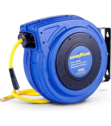 Goodyear Enrouleur de tuyau de soudage rétractable 6,35 x 15,2... Extrémités du tuyau mâle/mâle 100 % fabriqué et assemblé aux États-Unis Tuyau Air Comprimé Tuyau Caoutchouc Spiralé Acier - Diamètre 152 Mm - Vendu Par 5 M Tuyau Air Outils Pneumatiques USA Fil synthétique en spirale renforcé et gaine extérieure en caoutchouc résistant à l'abrasion N/A - 12V 250 PSI Air Compressor | Compressors Fittings Solid Brass End Fittings : 1/4 MNPT ; spirale Yarn Reforcement synthétique ; abrasion-resistant Rubber Outer Jacket ; 100 % Made and Assembled in the USA ; garantie 10 ans Tuyau en caoutchouc(hose) a air 3/8 x 50' x 1/4(M)NPT 71.379 TOPRING