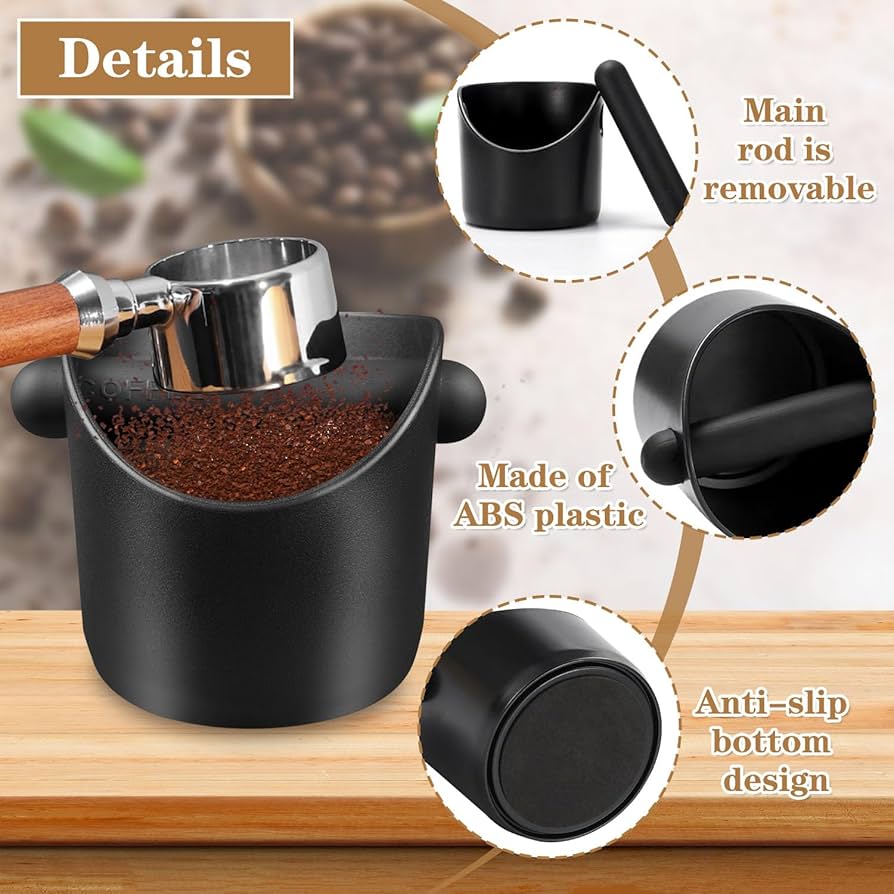 Il suffit de frapper votre porte-filtre sur la barre en caoutchouc, et le sol tombe directement. Acier inoxydable durable : fabriquée en acier inoxydable de haute qualité, cette boîte à café est robuste, résistante à la rouille et conçue pour durer. Barre Frappe Amovible Boîte à Café En Acier Inoxydable Avec Barre En Caoutchouc, Récipient Accessoire Barista Boîtes à frapper et tapis ; Boîte à marc DeLonghi, acier inoxydable · $39.99 ; Coffret de 10 capsules Breville Knock · $39.99 ; I.XXI Knock Box avec base... Design compact mais spacieux : avec une capacité de 700 ml, cette boîte à marc de café peut contenir assez de marc pour un usage quotidien tout en s'adaptant parfaitement sous la plupart des machines à expresso. Cet ensemble de boîtes à café en acier inoxydable de 700 ml, complet avec une brosse de nettoyage, est une solution compacte, durable et sans désordre pour le brassage quotidien d'expresso à la maison ou dans des environnements professionnels. Contenu : 1 seau à marc de café., 1 pinceau. Facile à nettoyer et multifonction : la poubelle à café et la brosse sont faciles à rincer sous l'eau courante ou à placer dans le lave-vaisselle. Le design rond sans cadre maximise l'espace à l'intérieur tout en économisant de l'espace sur le comptoir à l'extérieur, idéal pour les installations à la maison ou au café. Caractéristiques : Construction en acier inoxydable durable : boîte à frapper fabriquée en acier inoxydable de haute qualité, résistante à la rouille, à la chaleur et à l'usure quotidienne. Le panneau arrière surélevé aide à éviter les éclaboussures salissantes sur votre plan de travail. Caractéristiques du produit : Matériau : acier inoxydable/bois + brosse en nylon., Couleur : argenté., Capacité : 700 ml. Matériau : acier inoxydable, caoutchouc Liste des paquets : 1 x récipient à café moulu 1 x boîte extérieure • Pratique à nettoyer : la conception détachable, grâce à la grande ouverture, permet désormais un accès libre aux conteneurs à frapper. L'intérieur peut être lavé confortablement à l'eau. Convient également au lave... Facile à utiliser avec ouverture inclinée : la boîte Knock dispose d'un design incliné ouvert et d'une barre de frappe amovible fixée par des vis latérales, ce qui permet de jeter le marc de café sans effort. Le fond antidérapant protège les surfaces contre les rayures et réduit le bruit, offrant une expérience de préparation du café plus silencieuse et plus stable. Base antidérapante pour plus de stabilité : l'anneau en caoutchouc antidérapant au fond maintient la boîte à frapper stable et protège votre plan de travail. Tiroir à expresso en noyer, boîte à café avec barre de appe