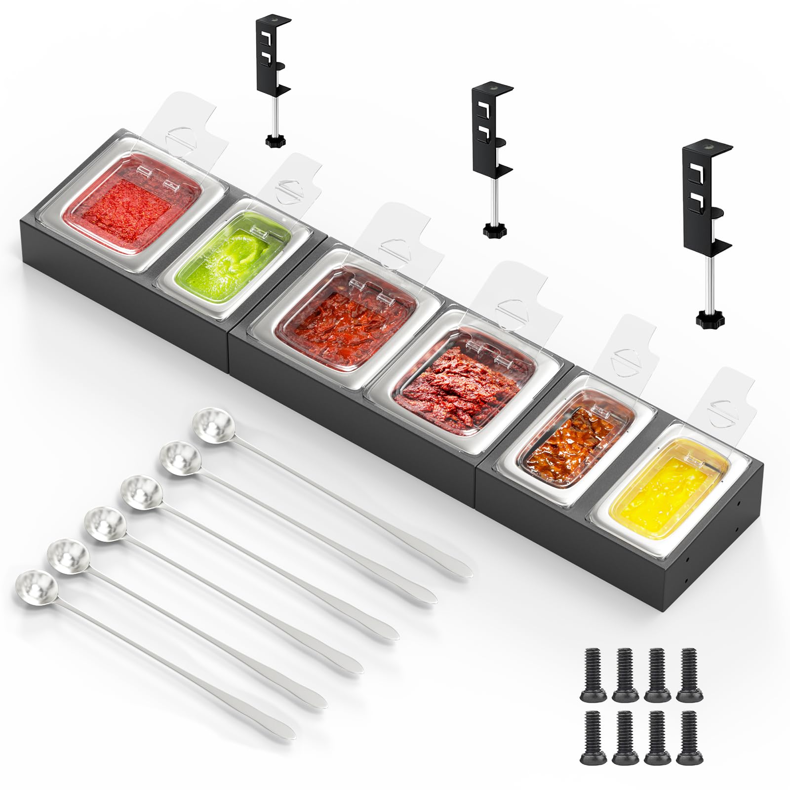 Station à Pizza Acier Inoxydable Station De Garniture En Acier Inoxydable Avec Couvercle, Plateaux Station De Service Pour Pizza Facile à nettoyer et à entretenir: la surface lisse en acier inoxydable et les composants amovibles permettent un nettoyage rapide et approfondi, une garantie de sécurité alimentaire et d'hygiène sont systématiquement respectées avec un minimum d'effort, idéal pour les environnements à fort trafic. See more product details Boite A Pizza Pizza Topping Station 18 X 4 X6 6 Compartimento Conception multi-usages: idéal pour une utilisation dans les restaurants, les hôtels, les cafétérias ou les cuisines à domicile, cette station fonctionne comme une station de garniture à pizza, une boîte à épices, un serveur de condiments ou un organisateur d'assaisonnement, s'adapter à n'importe quel cadre culinaire avec facilité. Cette station de garniture à pizza combine praticité et durabilité avec son design de station à condiments en acier inoxydable à 6 compartiments, avec des boîtes d'assaisonnement amovibles avec couvercles et cuillères sécurisés, parfaite pour organiser et servir efficacement les épices, les garnitures et les condiments dans les cafétérias, hôtels, cuisines ou restaurants... Facile à nettoyer et à entretenir: la surface lisse en acier inoxydable et les composants amovibles permettent un nettoyage rapide et approfondi, une garantie de sécurité alimentaire et d'hygiène sont systématiquement respectées avec un minimum d'effort, idéal pour les environnements à fort trafic. Construction en acier inoxydable: fabriqué en acier inoxydable, cette station de garniture de pizza assure une utilisation et une résistance durables à la rouille et à la corrosion, ce qui le rend parfait pour les cuisines, les cafétérias ou les hôtels occupés., ., Sa construction robuste offre des performances quotidiennes fiables sans compromettre l'hygiène. Conception amovible: chaque boîte d'assaisonnement est détachable, ce qui rend le remplissage et le nettoyage sans effort., ., Les couvercles serrés inclus protègent le contenu de la contamination et maintiennent la fraîcheur, tandis que les cuillères qui l'accompagnent permettent une distribution pratique et sans gâchis. Description: Cette station de garniture à pizza combine la pratique et la durabilité avec sa station de condiment en acier inoxydable à 6 grilles, avec des boîtes de saison amovibles avec des couvercles et des condosités sécurisés, parfaits pour l'organisation et les épices, les garnitures et les restaurants;.