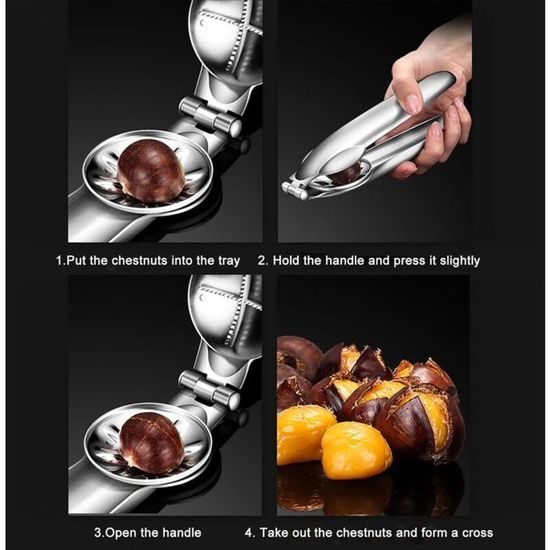 Contenu : 1 coupe-châtaignes en acier inoxydable., 1 éplucheur. Pince ouvre-écrou, pince à châtaigne casse-noisette économisant du... Dénudage pratique : le coupe-marrons est conçu avec un design en croix, et les dents dentelées peuvent facilement ouvrir la peau de châtaignier, combinées à la poignée allongée. Les coupe-châtaignes sont souvent utilisés pour les noix comme les châtaignes, les noix, etc. Casse-noix Acier Inoxydable Pince à Marrons Oldmoom Outil Pour Couper Les Châtaignes, Pince à Châtaignier En Acier Inoxydable, Décapsuleur De Noix De Châtaigne, Rapide De Châtaigne Clip, Pince à Noix, Ouvre-châtaigne, Pour Châtaignes,Noisettes éplucheur Pour Châtaignes Le paquet comprend : 1 x coupe-marrons en acier inoxydable, 1 x éplucheur, 2 x armure pour les doigts Coupe-châtaignes en acier inoxydable, coupe-châtaignes, casse-noix, coupe-maronis, Ouvre-châtaignes, pince à châtaignes, coupe-châtaignes, coupe-noix pour noix, fruits secs, châtaignes, sheller. Coupe-châtaignes en acier inoxydable : le coupe-marrons en acier inoxydable de qualité supérieure est une pince à maronier, sans déformation ni corrosion après une utilisation prolongée. Le coupe-maroni est un bel outil, élégant, courbé et épais Il suffit de placer la noix dans la rainure en dents de scie, d'appuyer sur la poignée vers l'intérieur avec votre main, puis de casser la coquille de noix facilement et facilement, et la viande de noix est intacte - Le coupe-châtaignes a une poignée ergonomique et excellente pour une prise en main confortable, sans être trop grand ou lourd et sans risque de blessure. Caractéristiques du produit : Matériau : acier inoxydable., Couleur : voir photo., *Dimensions : voir photo. Pince à châtaigne casse-noisette éplucheur casse-noisette pince à noix... Utilisation sans déformation ni corrosion après une utilisation prolongée. est un outil utile pour un usage quotidien à la maison, pratique pour la vie quotidienne, la maison, la boulangerie, le restaurant, etc Casse Noix - Métal - Rouge - 11.2*5.4*2.5cm - Outil de cuisine pratique