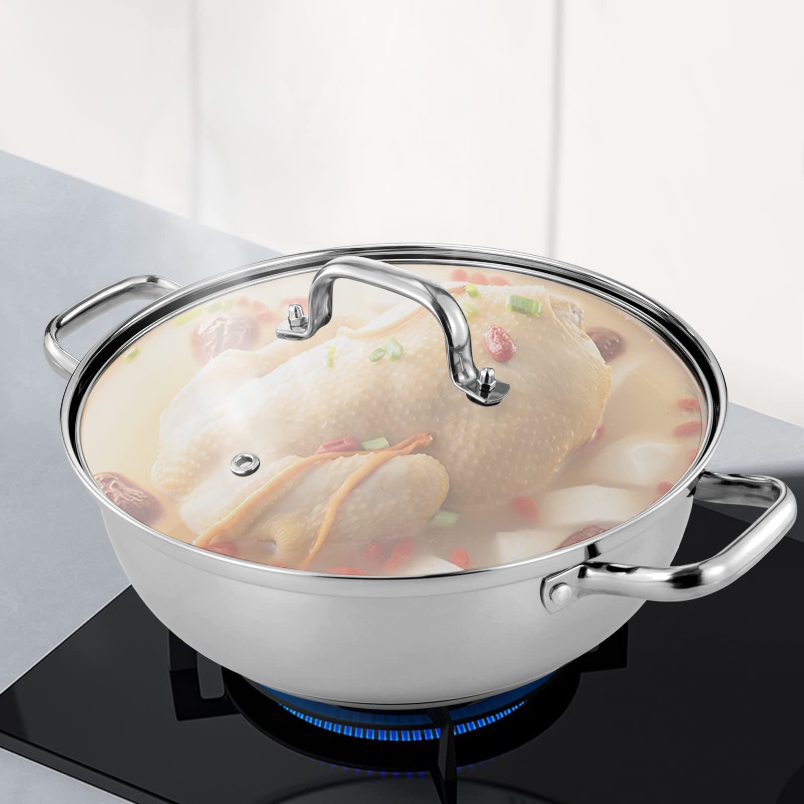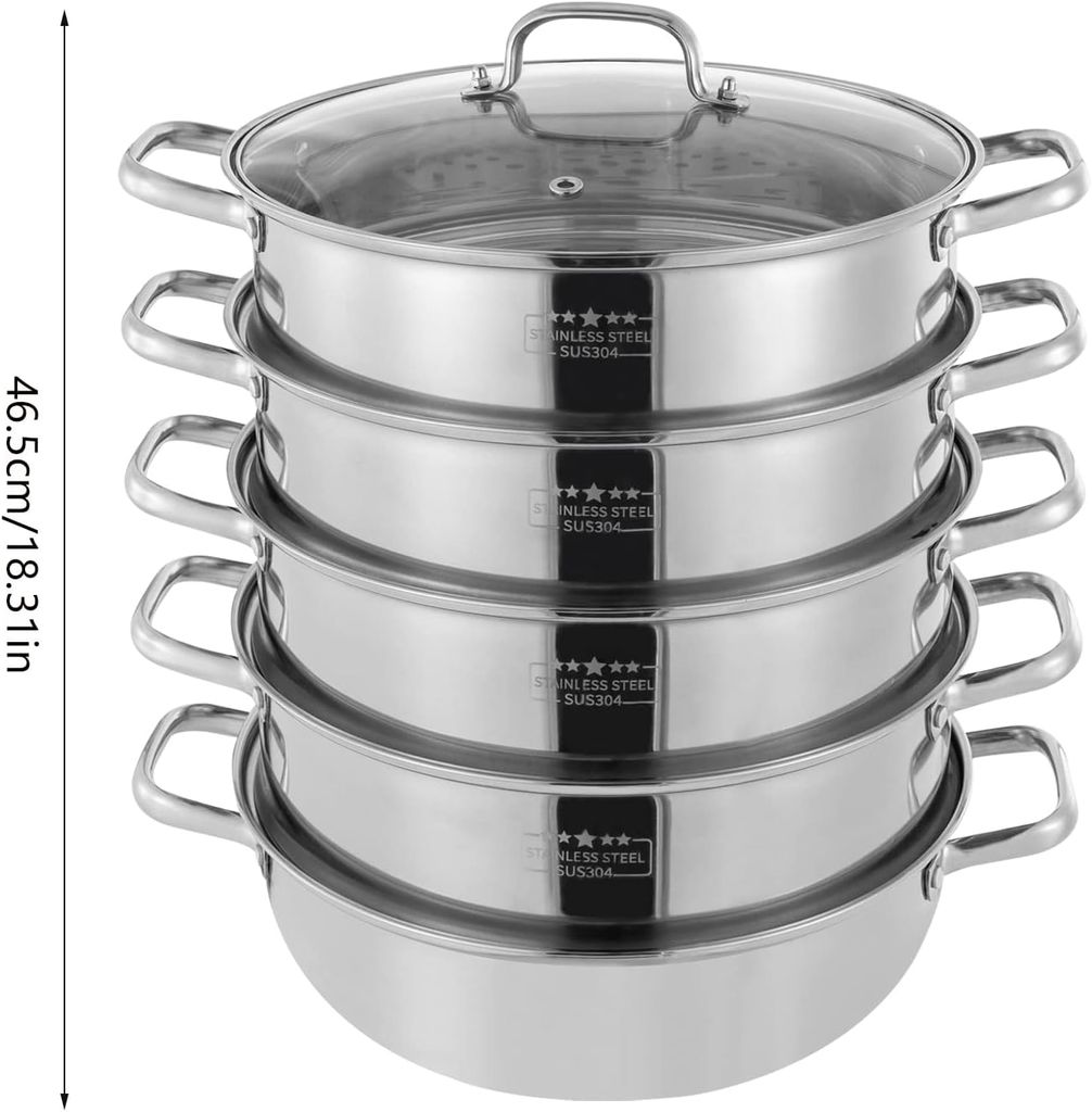 Insert de cuiseur vapeur en acier inoxydable, extensible, s'adapte à... En bref, il sera votre assistant de cuisine. Passe au lave-vaisselle : oui. Hauteur totale du produit : 31 cm. Diamètre de l'insert vapeur : 24 cm. Il cuit rapidement les aliments et préserve les nutriments des aliments sans perte. Dimensions du colis : 32,5 x 26 x 23 cm., Poids brut : 2,3 kg., Poids net : 2,1 kg. Cuiseur vapeur, 5 couches, en acier inoxydable, à induction Hauteur de chaque panier vapeur : 8 cm. Il est également livré avec un trou vapeur pour une cuisson sûre. Panier Vapeur 24 Cm Panier Vapeur, Panier Vapeur En Acier Inoxydable Insert Vapeur Avec Poignée, Panier Vapeur Pour Légumes, Œufs, Patates Douces, Fruits De Mer, Riz Cuiseur Vapeur Inox Détails : - Couvercle visible : il vous permet d'observer le processus de cuisson. - Poignée stable : la poignée reliée par des rivets ne peut pas tomber facilement, ce qui vous protège des brûlures et facilite la prise en main du pot. Si vous voulez servir un délicieux repas à votre famille, ce cuiseur vapeur en acier inoxydable est un bon choix. Grande capacité : le cuiseur vapeur est équipé de 5 vapeurs qui peuvent vaporiser jusqu'à 5 vapeurs en même temps, ce qui résout parfaitement le problème de la vapeur fastidieuse. Le bateau à vapeur peut être démonté de manière flexible selon les besoins Hauteur du pot : 11 cm. Procédé : polissage Forme : ronde., Coloris : argenté. Aspect généreux : la teinte argentée, les lignes lisses et la surface lisse donnent à ce produit une apparence généreuse, ce qui le rend facile à intégrer dans votre cuisine Diamètre du fond du pot : 20 cm. Il peut être utilisé pour cuire à la vapeur des crevettes, différentes céréales, petits pains cuits à la vapeur et pour cuire des pâtes, du poisson, des légumes et de la soupe. Matériau de haute qualité : fabriqué en acier inoxydable avec un processus de polissage, ce produit est résistant à la corrosion, sûr à utiliser, résistant à l'usure et durable pour assurer votre utilisation à long terme