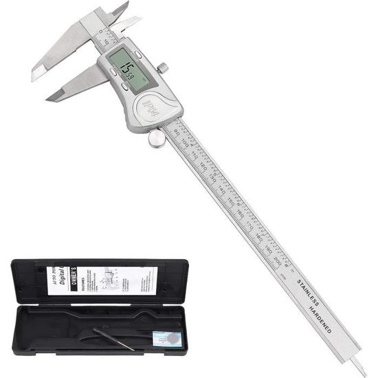 Spécification : environ 0 à 50 mm. WIP-Pied à coulisse numérique électronique Outil de mesure d'étriers Il peut mesurer avec précision le diamètre intérieur et extérieur, les profondeurs et les marches. Accessoire Bricolage Mécanique Pied à Coulisse En Acier Inoxydable, Petit Outil De Mesure Instrument De Mesure De Coulisse Spécifications: Type d'article : pied à coulisse Matériau : acier inoxydable. Valeur de lecture : 0,05 mm. MICROMETRE,Caliper box--Pied à coulisse en acier inoxydable, outil de mesure numérique... Construction : fabriqué en acier au carbone trempé avec ponçage fin et montage, ce pied à coulisse est conçu pour durer. Son design à double échelle permet des mesures précises aussi bien en unités métriques que impériales, ce qui le rend adapté à une variété d'applications. JIA Pied à coulisse 0‑50mm Mini outil de mesure industriel de rouille de résistance à l'usure... Il peut être utilisé dans différents environnements tels que les ateliers, les salles de classe ou même à la maison. Contenu : 1 pied à coulisse 1 sac de rangement. Précision et précision : ce compteur numérique offre une grande précision avec une lecture de 0,05 mm. 1., Scène d'utilisation : le pied à coulisse est excellent outil pour mesurer de petites choses et est facile à transporter, de sorte que vous pouvez le ranger dans votre trousse à crayons, sac à dos, bureau, boîte à outils de montre, voiture et tous les autres espaces de travail 2., Plage et mesure : la plage de mesure du mini pied à coulisse est de 0 à 50 mm, et la conception à double échelle de forme métrique et impériale vous permet d'obtenir des données de mesure précises et claires., 3., 4 modes de mesure : le pied à coulisse permet de mesurer les diamètres intérieurs et extérieurs, les profondeurs et les marches de deux jeux de mâchoires et d'une sonde., 4., Facile à utiliser : le pied à coulisse push-pull est pratique, ne se déplace pas facilement et est facile à mesurer. Cela permet de mesurer les dimensions extérieures, les dimensions intérieures, les profondeurs et les marches
