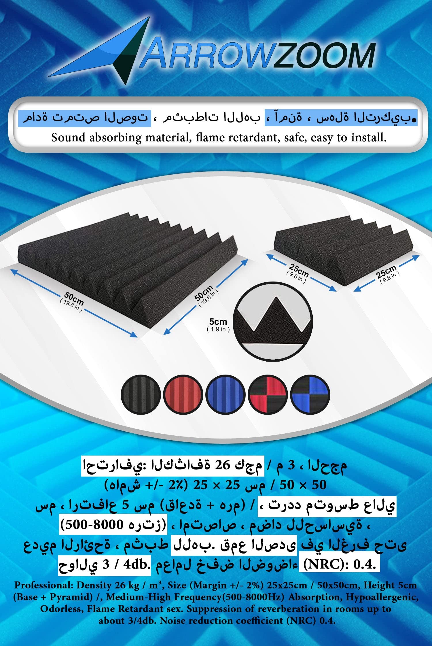 Fabriqués avec de la mousse de polyuréthane de haute qualité, les panneaux pyramidaux insonorisants représentent le nec plus ultra en matière de traitement acoustique économique disponible sur le marché: bon marché, facile à installer, ignifuge, absorbant le bruit. Application parfaite sur plafond, mur, porte et autres surfaces. PROFESSIONNEL: Densité 26 kg / m³, taille (tolérance +/- 2%) 25x25cm, hauteur 5cm (base + pyramide), absorption des fréquences moyennes-hautes (500-8000Hz), hypoallergénique, sans odeur, retardateur de flamme. Voulez-vous tirer le meilleur parti de votre batterie avec les cymbales Zildjan et la grosse caisse ou votre guitare Fender? Les panneaux Arrowzoom sont faits pour vous. Panneaux de Mousse Acoustique, Panneau Absorbant 12 pièces Anti Bruit MULTI-USAGE: Le panneau absorbant le son est bon pour absorber les bruits indésirables, réduire l'écho, refléter uniformément les ondes sonores lors de l'enregistrement dans le studio de musique (microphone professionnel, instrument de musique, microphone bon marché) tout en montrant un film au cinéma , salle de répétition, station de jeux vidéo, bureaux et tous ces espaces où vous souhaitez éviter une forte distorsion du bruit. ces endroits qui nécessitent une aide supplémentaire pour obtenir la meilleure qualité audio. Panneaux Mousse Acoustiques Polyuréthane 25x25x5cm Bleu, Lot 48... Soyez prudent lors de la découpe du plastique extérieur afin de ne pas endommager les panneaux polyuréthane. Les panneaux acoustiques insonorisants ne sont pas seulement utilisés pour le traitement et la correction acoustique dans les studios d'enregistrement professionnels, les multiplexes, les bibliothèques, les magasins de musique, les bureaux, les magasins, mais aussi pour décorer le salon, la chambre à coucher, la salle de jeux, etc. Un accessoire moderne et économique, apprécié des musiciens, youtubeurs, audiophiles et amateurs de bricolag pour pour le traitement et la correction acoustique. Panneaux Absorption Son Studio Traitement Acoustique Pièce Panneaux Mousse Acoustique Arrowzoom - 24 Pièces 25x25x5 Cm - Absorption Son - Blanc Perle Studio Enregistrement Podcast Boitier Iptv 50x50x8cm Réducteurs de bruits Panneaux acoustiques Famille en mousse... Suppression de la réverbération dans la salle jusqu'à environ 3/4 db.