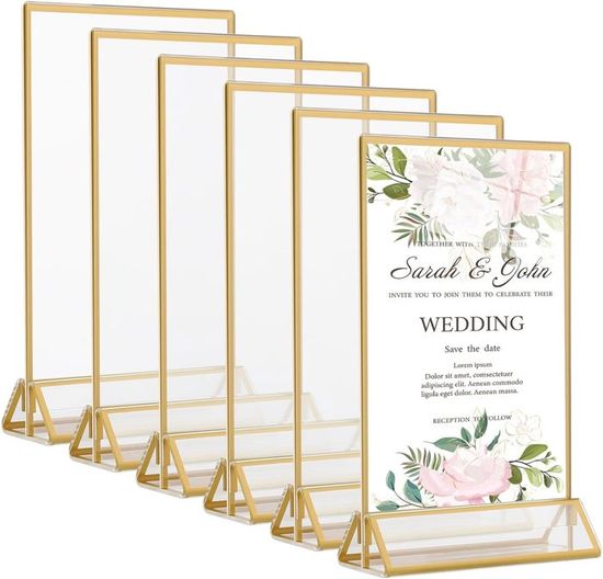 Offrez-vous le luxe d'une présentation impeccable et sophistiquée avec les cadres photos dorés double face DAJAVE. Ne cherchez plus, optez pour la qualité et l'élégance des cadres photos dorés double face DAJAVE pour sublimer chaque instant de votre mariage ou de vos événements spéciaux. Idéaux pour maintenir vos photos et informations en toute sécurité. Ils apprécient également la facilité de chargement et de changement de contenu, ainsi que la stabilité lors de l'affichage. DAJAVE Cadres Photos Dorés Double Face 10x15CM - Pack de 12 - Porte Ajoutez une touche de classe à votre prochain événement grâce à nos supports de panneau en plexiglass de qualité supérieure, conçus pour sublimer vos photos et vos messages de manière élégante et professionnelle. Les cadres en acrylique de haute qualité avec bordure dorée offrent un design élégant et contemporain qui s'adapte parfaitement à tout type d'événement. Collage de cadres photo 3 pcs de table Doré 15x21 cm MDF - Pwshymi... Faites confiance à DAJAVE pour des cadres photos dorés double face de premier ordre lors de votre prochain événement. Pour des occasions spéciales comme un mariage ou un événement élégant, les supports de panneau en acrylique de qualité supérieure DAJAVE offrent la solution parfaite pour mettre en valeur vos photos ou messages de manière élégante. Commandez dès maintenant et offrez-vous l'excellence pour un souvenir mémorable et raffiné. Porte Numéros Table Mariage Acrylique Cadre Doré Lot De 6 Supports De Panneau En Acrylique Doré 10x15 Cm - Présentoir Double Face Pour Menus, Photos Menu Mariage Cadre Acrylique 15x21cm Présentation HUA - Cadres photo - Collage de cadres photo 3 pcs de mur table Bronze... Service client satisfaisant et garantie de satisfaction : Nous nous engageons à offrir un service client de qualité et à garantir une solution en cas de problème.