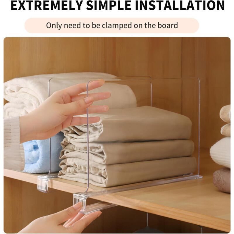 Organisation Placard Sans Perçage MeYuxg 12PCS Separateur Etagere, Acrylique Transparente Diviseur De étagère De Placard Lot De 12 Séparateurs D'étagères Pour L'organisation De Votre Placard Organisateur Detageres Separateurs Transparents Pour Etageres~p180030423 1 ensemble de rangements réglables et extensibles séparateurs pour armoire, étagère, sans clou... 【Matériau de haute qualité】 Cette Separateur Etagere dressing transparente est en matériau acrylique, difficile à déformer ou à casser, ne contient pas de BPA, est transparente et inodore, peut être utilisée pendant longtemps, les bords sont lisses et arrondis, ne rayera pas votre armoire et articles, vous pouvez être assuré d'une utilisation séparateurs d'étagères 👜 【Large gamme d'utilisation】 Les Separateur etagere réglables conviennent non seulement aux armoires, aux chambres, aux coiffeuses, aux étagères, aux salons, aux cuisines, aux bureaux, etc. 【Facile à installer】L'étagère de Rangement est facile à installer. Les separateur etagere réglables conviennent non seulement aux armoires, aux chambres, aux coiffeuses, aux étagères, aux salons, aux cuisines, aux bureaux, etc. 👜【Économisez de l'espace】Nos Separateur Etagere peuvent vous aider à ranger des vêtements et d'autres articles. Il peut économiser plus d'espace et empiler les objets proprement, vous permettant d'obtenir un espace bien rangé. De plus, les diviseur de placard sont transparentes et peuvent mieux afficher vos éléments et vous aider à mieux les trouver et les gérer. Polyvalence : notre séparateur d'étagère en acrylique peut être utilisé non seulement dans l'armoire, mais également dans la cuisine, le bureau, le stockage des aliments, la chambre, la salle de traitement, etc. Vous pouvez utiliser le séparateur d'étagère pour ranger la vaisselle, les pots à épices, les livres, les serviettes. , les...