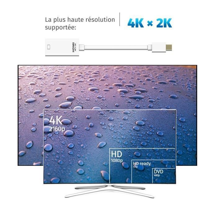 - Prend en charge la transmission audio non compressée par exemple via LPCM. StarTech Adaptateur Mini DisplayPort vers HDMI devis sous 1h Prend en charge la résolution vidéo jusqu'à 4K à un taux de rafraîchissement époustouflant qui transmet de manière optimale le signal vidéo et audio numérique sur le grand écran comme la télévision, le moniteur et le projecteur sans flou ni délai Adaptateur Mini DisplayPort HDMI Actif 4K @ 60Hz Pour Multi-Display Adaptateur Displayport Vers Hdmi Spécifications: Prise en charge de la protection de contenu numérique haute bande passante (HDCP). - Prend en charge le son compressé via MPEG, Dolby Digital et DTS. CABLING® Câble Adaptateur Mini DP vers DP, Câble Convertisseur Mini DisplayPort (Thunderbolt) vers DisplayPort, 4K, Mâle vers Mâle, Compatible avec Macbook, Chromebook Pixel, Dell U2414H, Asus VG248QE. Connectique Audio / Vidéo. Remise 5% pour les adhérents. Achetez vos produits high-tech (écran plat, lecteur blu-ray, video projecteur, …) en ligne Cuivre pur et connecteurs plaqués or pour une transmission stable et moins de perte de signal, pour une qualité audio et vidéo supérieure Vidéo et audio : prend en charge des résolutions vidéo jusqu'à 3840 x 2160 @ 30 Hz, 1920 x 1200 @ 60 Hz et 1080p (Full HD) et une transmission audio impeccable pour les canaux numériques non compressés 7., 1, 5., 1 ou 2 canaux Compatibilité : Apple MacBook Air (avant 2018)/Pro (avant 2016), iMac (avant 2017), Mac Mini, Mac Pro. Câble DisplayPort vers HDMI Goobay, , Clicktronic... 20 références et 5 marques à partir de 14€ sur , n°1 du high-tech, Élu Service Client de l'Année. Câble Mini DisplayPort vers HDMI , Générique,...Adaptateur Mini DisplayPort vers HDMI , DeLock,...Adaptateur Mini DisplayPort vers DVI ,...Adaptateur Mini DisplayPort vers VGA Générique, NEDIS,...Adaptateur DisplayPort vers USB-C i-tec, Générique, NEDIS......Câble DisplayPort vers DVI Clicktronic... - Mode miroir: rend vos photos de vacances et films préférés sur grand écran encore plus intéressants et agréables! - Prend en charge 16 bits de profondeur de couleur par canal de couleur (48 bits ensemble sur tous les canaux) pour des couleurs plus riches Prend en charge la bande passante HDMI 225 MHz/2,25 Gbps (6,75 Gbps avec tous les canaux combinés). Lenovo Helix, X230, L430, L530, T430s, T430, T530, W530., Satellite Pro S500, Tecra M11, A11 et S11., Dell XPS 13 (avant 2016). Avec notre adaptateur Mini DisplayPort vers HDMI, vous pouvez connecter vos ordinateurs portables ou ordinateurs à votre téléviseur, moniteur, écran ou projecteur sans adaptateur, pilote ou logiciel supplémentaire. S'adapte parfaitement aux ports de vos appareils pour une transmission stable du signal