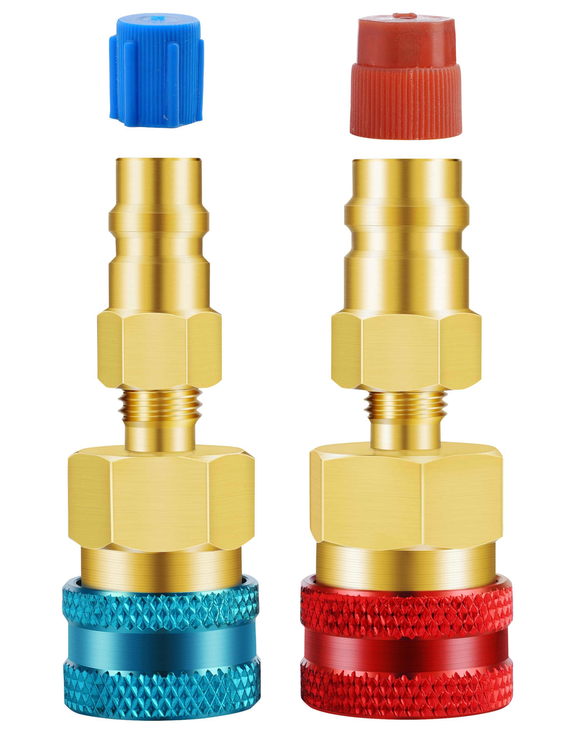 Adaptateur R1234yf vers R134a facile à utiliser pour collecteurs ACS Le kit de coupleurs rapides R1234yf a une fonction d'arrêt automatique, ce qui rend le retrait et l'installation plus faciles et plus pratiques. Kit Raccord Réfrigérant Voiture KSTE R1234yf Raccord, Adaptateur De Coupleur De Climatisation - Adaptateur De Coupleur Rapide De Côté Bas R1234YF à R134A Raccord De Climatisation For Raccord Laiton Haute Basse Pression Pas de fuite : le design de verrouillage à bille et les joints en caoutchouc offrent une excellente performance d'étanchéité, empêchant efficacement les fuites. R134A Adaptateur,Connecteur Coupleur Rapide Climatisation Haut et Bas... Matériau de haute qualité : les coupleurs rapides R134A à R1234YF sont fabriqués en laiton, qui est strictement inspecté pour garantir une haute qualité et une... Connecteur adaptateur R12 vers R134a : filetage femelle SAE 6,35 mm x raccord rapide R134a haute pression 16 mm., er Connecteur adaptateur R12 vers R134a : filetage femelle SAE 6,35 mm x raccord rapide R134a basse pression 13 mm., er Champ d'application : convient pour les climatiseurs de voiture R1234YF/R12 à R134A, réfrigérant R1234YF, jauges de collecteur de climatiseur, inspection de diagnostic, travaux de récupération et d'évacuation. Adaptateur côté haut R1234YF : coupleur rapide côté haute pression rouge R1234YF : coupleur côté haute pression R1234YF filetage femelle 17 mm x filetage mâle SAE 1/4. Adaptateur côté haut R1234YF : coupleur rapide côté haute pression rouge R1234YF : coupleur R1234YF côté haute pression filetage femelle 17 mm x filetage mâle SAE 1/4. Adaptateur côté bas R1234YF : coupleur rapide côté basse pression bleu R1234YF : coupleur R1234YF côté basse pression filetage femelle 14 mm x filetage mâle SAE 6,35 mm.