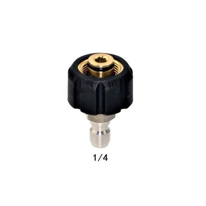Adaptateur pistolet nettoyeur haute pression + rallonge + 5 embouts pour Karcher K2-K7 acheter à prix bas - livraison gratuite, avis réels avec des photos Convertit les raccords filetés M22 en connecteurs rapides d'autres tailles ; peut être connecté à une variété de pistolets à eau haute pression, tuyaux, pompes... En Laiton Résistance 5000 Psi Adaptateur Pour Nettoyeur Haute Pression, Kit De Déconnexion Rapide Raccord 1/4 Femelle Vers M22 Femelle Matériaux : laiton, caoutchouc. Ce matériau est totalement résistant à la rouille et à la corrosion, conservant des performances optimales même après une utilisation prolongée. YUI Qiilu Adaptateur pour nettoyeur haute pression Aramox Ensemble D... Pression d'eau maximale : 5000 psi. Installation rapide : la conception du filetage interne G 1/4 pouce permet un assemblage simple et sécurisé sans avoir besoin d'outils spéciaux, tandis que la possibilité d'appliquer un produit d'étanchéité liquide pour filetage assure une étanchéité parfaite et une sécurité maximale pendant l'utilisation. Compatibilité universelle : Grâce à sa conception universelle, cet adaptateur est compatible avec la plupart des nettoyeurs haute pression et nettoyeurs haute pression disponibles sur le marché, offrant une polyvalence d'utilisation et s'adaptant parfaitement aux différents besoins de nettoyage. Protection supplémentaire : le revêtement protecteur en caoutchouc empêche non seulement les rayures accidentelles lors de l'installation, mais améliore également l'étanchéité du connecteur et aide à augmenter la pression de l'eau pour des performances de lavage supérieures.