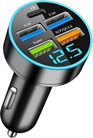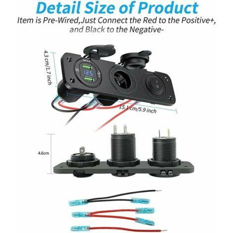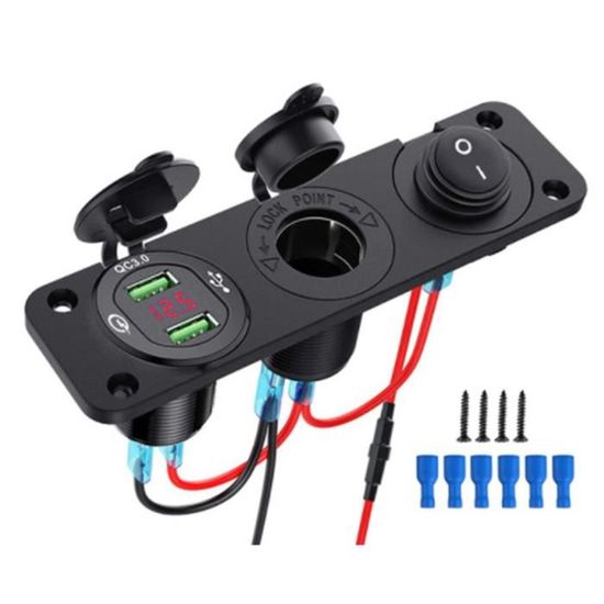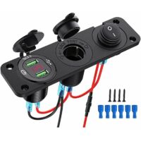 Il vous permet de vérifier l’état de la batterie sans distractions pendant la conduite Chargeur Allume Cigare Adaptateur Répartiteur Allume-cigare, Double Chargeur De Voiture USB, 2 Double Allume Cigare Voiture Avec ses deux ports USB QC3., 0, chaque port offre une puissance de 18W, vous permettant de charger simultanément deux appareils à grande vitesse. Deux prises allume-cigare 12V/24V fournissent une puissance totale jusqu'à 150W, s'adapte parfaitement à votre GPS, caméra de tableau de bord, Satnav, etc Le câble de raccordement de 25,5cm fourni (câble rouge pour le pôle positif et câble noir pour le pôle négatif) permet une installation facile et rapide. PRISE ALLUME-CIGARE 120W : Compatible avec les véhicules 12V/24V tels que les voitures, camions et camping-cars, cette prise allume-cigare de 120W vous permet de brancher facilement des appareils nécessitant une alimentation stable pendant vos trajets Charge 3 appareils au même temps : cette prise panneau USB 12 V est mis à niveau avec 3 ports et équipée d'une puce intelligente. Il peut charger 3 appareils en... Pour plus de praticité, le chargeur dispose d'un interrupteur marche/arrêt et d'un voyant LED rouge pour indiquer le statut de la connexion. Ce chargeur est conçu pour être utilisé dans les véhicules 12V/24V, tels que voitures, camions, et camping-cars, avec une prise allume-cigare 120W. PROTECTION DE VOTRE ÉQUIPEMENT : Équipé d’un fusible de 10A, ce chargeur offre une protection optimale contre les surintensités et les courts-circuits, garantissant une sécurité accrue pour vos appareils électroniques et le système électrique de votre véhicule Chargeur de voiture 4 ports USB chargeur allume-cigare, prise USB rapide 50 W QC3.0&PD avec voltmètre LED, compatible avec iPhone, Android, Samsung, tablette et smartphone Le fusible 10A intégré protège votre équipement contre les risques de surintensité et de court-circuit, assurant une sécurité maximale. VOLTMÈTRE NUMÉRIQUE LED INCLUS : Surveillez en temps réel la tension du système électrique de votre véhicule grâce à l’indicateur LED intégré.