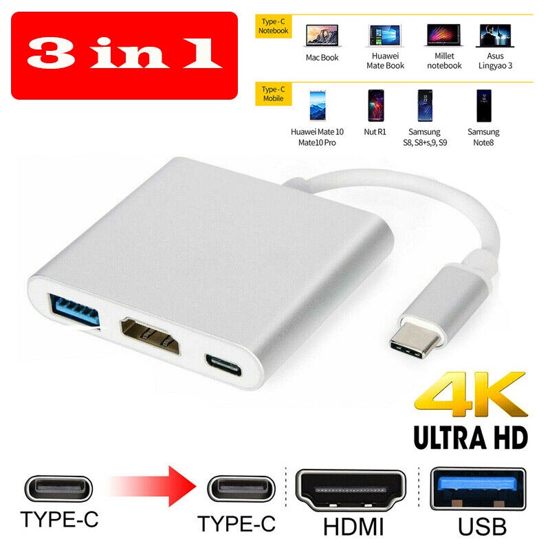 Adaptateur USB C vers HDMI 3 en 1, Type C Hub vers HDMI 4K Pour obtenir une synchronisation haute définition. Hub Usb C Charge Rapide 100w Adaptateur USB C HDM1, 3 In1 Type C Vers Hdmi Avec Sortie HD1 Adaptateur USB-C HDMI USB C HDM1 - Le type c vers hdm1 peut étendre l'affichage du téléphone portable/tablette/ordinateur portable au projecteur, à la télévision ou à d'autres écrans. This 3-in-1 adapter allows you to connect a HDMI® Monitor, TV, or Projector to your computer along with, one USB 3.0 Type-A, and USB-C (3.1 Gen1 5Gbs) device Découvrez l'adaptateur USB-C 3 en 1 avec sortie HDMI 4K, USB 3.0 et charge rapide. Idéal pour MacBook et autres appareils USB-C. Achetez-le sur... Adaptateur Usbc Vers HDM1 - Cet adaptateur multiport usb c est fabriqué en alliage d'aluminium, procédé de sablage par oxydation anodique, bonne dissipation de la chaleur, usure, anti-traces de doigts, robuste et durable. Il est compatible avec la plupart des appareils. Il a une puissance de sortie maximale de 100W. Nécessité d'avoir une interface Type-C complète, uniquement pour prendre en charge la sortie complète du produit, telle qu'une interface Type-C non complète, uniquement pour prendre en charge certaines des fonctions étendues. Plug and play, aucun logiciel, pilote ou processus d'installation compliqué n'est nécessaire. Le paquet contient: 1 x USB C vers HDM1 Matériaux : boîtier en alliage d'aluminium Précautions : Assurez-vous que le port Type-C de votre ordinateur portable dispose de capacités de chargement et de transfert de données avant d'acheter.