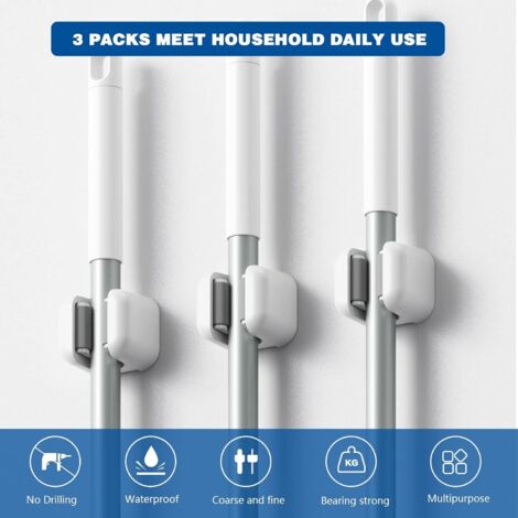 Crochet pour balai à franges sans perforation, clip pour balai à franges, support de salle de bain. Vendu par BRAVIX. Livraison offerte. - 28.59 %. 20,99 € Au... Robuste et durable : le support de rangement pour vadrouille et balai est fabriqué en acier inoxydable 304. La boucle triangulaire et l'engrenage en forme de pétale ajustent automatiquement la taille en fonction des différentes épaisseurs de la poignée pour empêcher les objets de glisser Lot De 2 Supports Muraux Adhésifs Sans Perforation (15cm*7cm) Chevilles PATERE,Rose--Supports de pinces à balai auto adhésifs, sans perçage