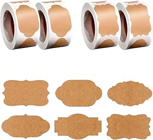 étiquettes Décoration Vintage Étiquettes Autocollantes Kraft Étiquettes Adhésives Autocollant Auto Auto Adhésif Alimentaires Rouleaux étiquettes Papier Kraft 300 Unités Étiquettes autocollantes vierges 2*300 pouces, 1.2... – Grandado Autocollant de scellage en papier Kraft, étiquette autocollante pour bouteille en verre... Papier kraft haut de gamme, durabilité exceptionnelle : fabriqué à partir de papier kraft de haute qualité, il présente une texture épaisse, une résistance exceptionnelle aux intempéries et une longue durée de vie. Cela facilite le classement, l'annotation ou la rédaction de messages, ce qui est pratique et commode. Support adhésif puissant garantissant une adhérence sûre sans décollement : doté d'une couche auto-adhésive à forte adhérence, il adhère fermement à diverses surfaces, notamment le verre, le plastique, le papier et le bois. KEWUF 2 Rouleaux Étiquettes Autocollantes (300 Unités/Rouleau), Étiquette Cuisine, Autocollant en Papier Kraft, Idéales pour Cadeaux, Pots en Verre, Confitures et Décorations DIY (2 Modèles) Il résiste au soulèvement des bords et au décollement après application, garantissant une fixation stable dans divers scénarios d'utilisation. Une aide précieuse pour l'organisation, la décoration et l'étiquetage au quotidien. Quantité généreuse et formes variées pour un excellent rapport qualité-prix : contient 300 feuilles de deux formes d'étiquettes distinctes. Rouleaux d'étiquettes blanches isolés. Étiquettes pour impression par transfert thermique direct...