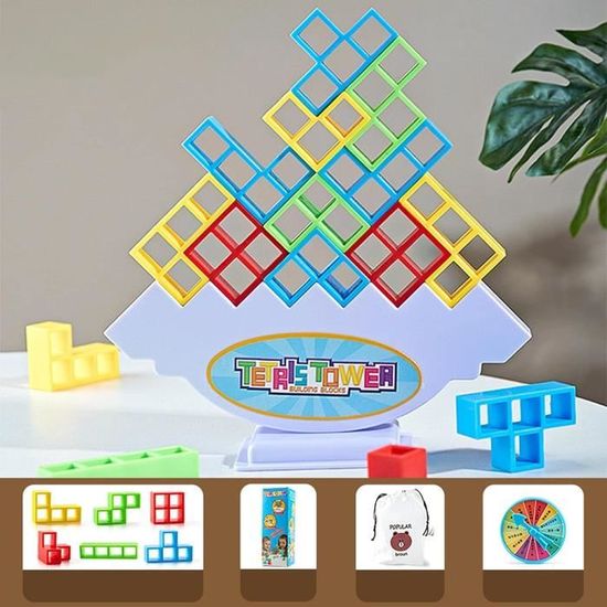 Jeu d'équilibre - Tetra Tower - 64 Pièces - Multicolore - Pour Adultes et Enfants - 22 Cartes Matériel produit: Cet ensemble de blocs d'empilement d'équilibre est en matériau ABS. Jeu Société Empilage 48 Pièces BOXOB 64pcs Dinosaure Jeu D'Équilibre Pour Tetra Tower, Jeu D'Équilibre Adulte Enfant Drôle Jeux Pour Tetra Tower Pour 2 Joueurs Jouet D'Équilibrage Pour Fêtes De Famille Voyages Jouet éducatif Coordination Ils répondront à vos besoins de jeu. Le Tetra Tower de Vibbang, c'est trop fun ! Avec ses 64 pièces aux couleurs vives, ce jeu d'équilibre en style Tetris plaît autant aux kids qu'aux adultes StarryTiger Jeu dempilage en Tetris, Tetra Tower, 48pcs Blocs de Co... Il aide les enfants à développer beaucoup de compétences. Par rapport aux blocs en bois, le matériau ABS n'a aucun risque de pelage et d'échauffement de la peinture et est moins sujet à la fissuration. Il est parfait pour les enfants de 2 ans et plus, des adolescents et des adultes. Contenu de l'emballage: vous recevrez 48 morceaux de jeu d'équilibre en 4 couleurs, y compris le bleu, le rouge, le vert et le jaune, 1 base de dinosaure (20x6,7cm) et 22 pièces de tirage. Convient pour: Ce jeu de tour de construction convient aux enfants, aux adultes et aux familles. Spécification : Couleur : bleu, rouge, vert et jaune Matériau : ABS Taille du produit : base de dinosaure : 20 x 6,7 cm Plateau : 8 x 5,5cm Chaque bloc à empiler : 1,5 x 1,5cm Détails du forfait : 48 x blocs empilables d'équilibre 1 x socle de dinosaure 1 x plateau 22 x cartes à piocher Remarque : En raison de la mesure manuelle, la taille et le poids peuvent présenter une certaine erreur.