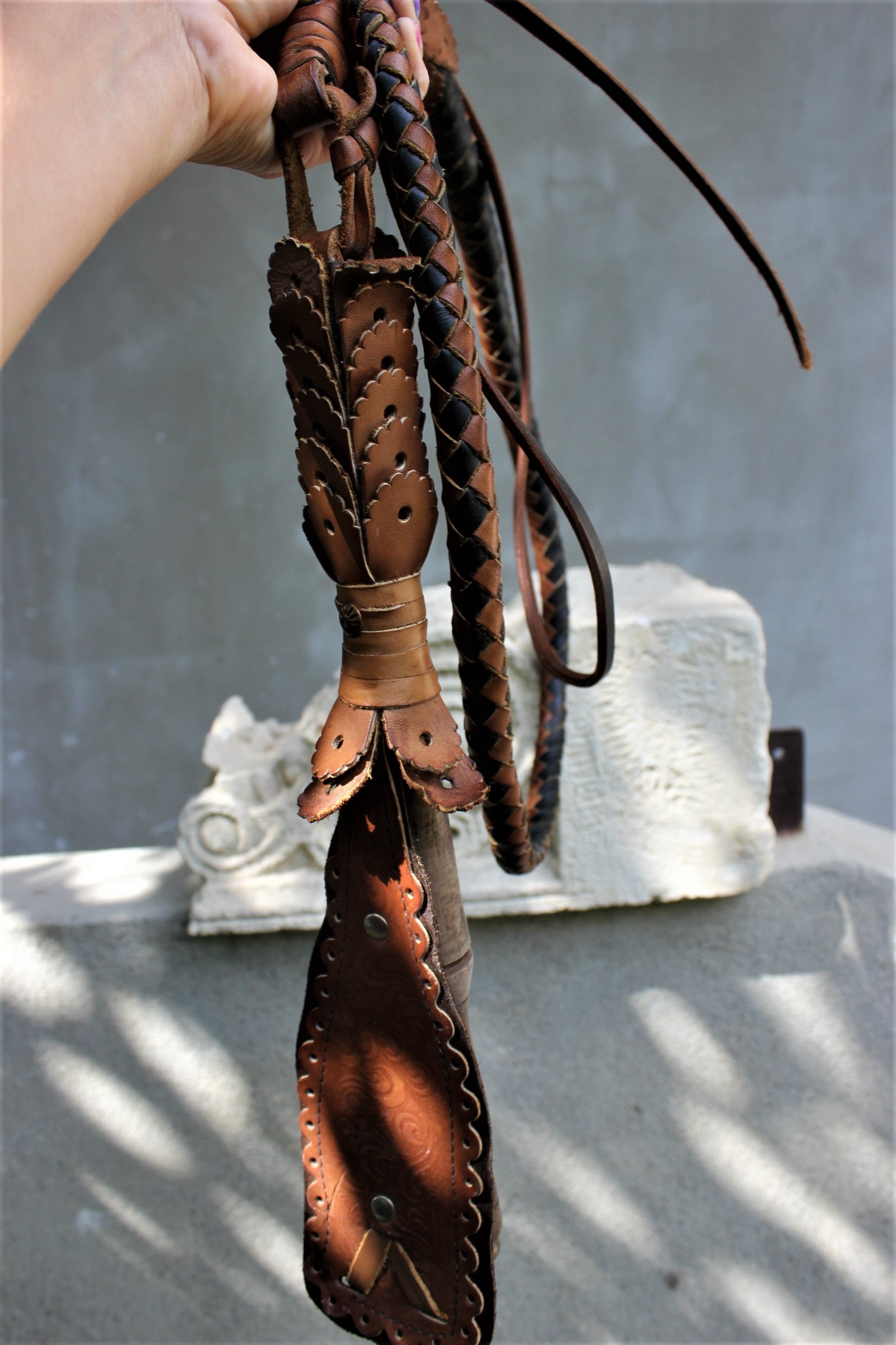 Fouet de Charon dégradé noir et bleu - Les fouets de CHARON - Caresse... Poignée sûre et confortable: Conçue avec une approche conviviale, ce faux fouet dispose d'une poignée enveloppée de cuir synthétique qui offre une prise en main ferme et confortable, minimisant la fatigue de la main même lors d'une utilisation prolongée. Parfait pour les costumes d'Halloween, les événements de cosplay, les performances théâtrales, et plus encore. Chapeau Cowboy Kit Indiana Jones Adulte - Fouet Et Chapeau - Set Déguisement Fouet Fête Thème Western Détails du package: Ce produit comprend un fouet en cuir noir, mesurant 180 cm de longueur, juste la bonne longueur pour les costumes. Fouets, neuf et occasion, Chiens - Matériel Description du produit 【Spécifications】 Matériau : Cuir Artificiel Couleur : Noir Taille : 180 cm / 70,86 pouces Contenu du colis : 1 x Fouet Indiana Jones Avertissement De Sûreté Non INDIANA JONES - FOUET EN CUIR DE 183 CM