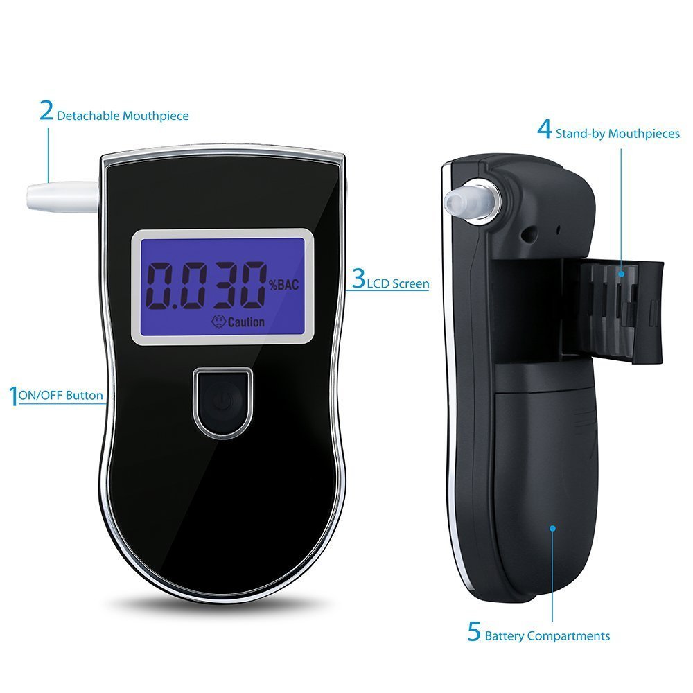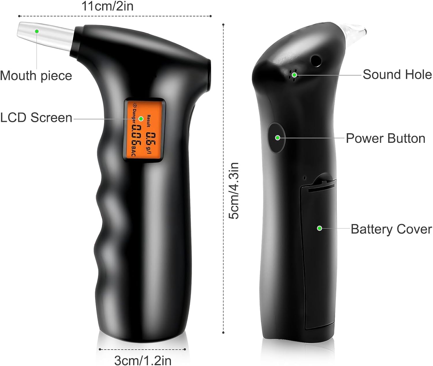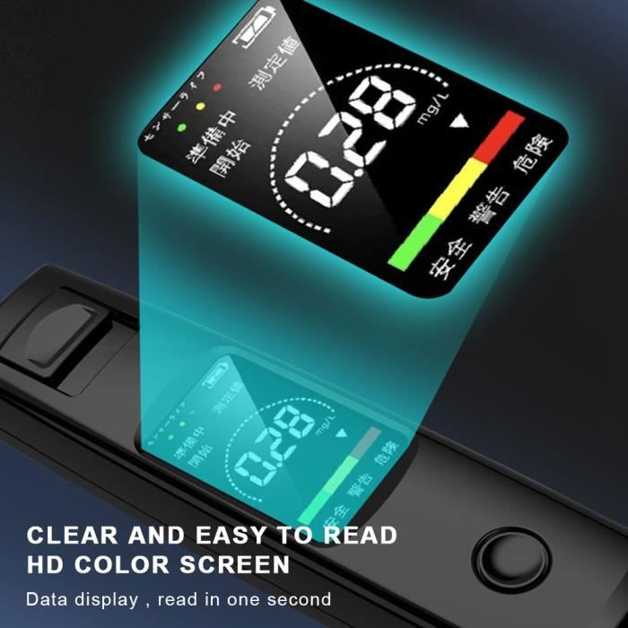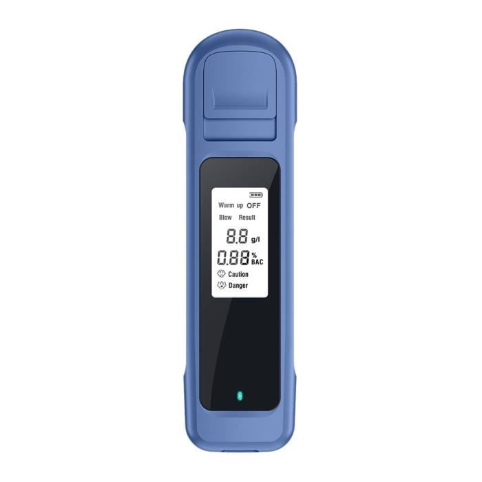 Comment utiliser l'alcootest : A. Ethylotest Electronique Ethylotest,Éthylotest Electronique Avec Affichage Numérique LCD éthylotest électronique LCD Après avoir bu de l'alcool, il est recommandé d'attendre 20 minutes avant de faire le test. Le résultat sera prêt dans les 3 secondes affichées sur l'écran LCD pendant 10 secondes E. Symbole du mode éthylotest 1., La plage numérique de l'affichage du symbole Caution est de 0,02 % à 0,05 % BAC (0,2 gl-0,5 g/l) 2., Le symbole Danger est un affichage LCD supérieur et égal à 0,05 % BAC (ou 0,5 g/l) Attendez au moins 3 minutes avant d'effectuer le test suivant. Gilet Jaune Alcootest Ethylotest U00c9lectronique Avec Affichage Temps de fonctionnement : Préchauffage : 10 secondes, réponse : <5 s Appuyez sur le bouton d'alimentation pendant 2 secondes pour démarrer B. Alimentation : 2 piles alcalines AAA de 1,5 V (non incluses) Ensuite, OFF s'éteint automatiquement (nécessite 2 piles AAA non incluses) Fonctionnalité: Alcootest professionnel – Le testeur d'alcool dispose de capteurs intelligents, de semi-conducteurs et de microprocesseurs avancés, avec l'écran LCD, une sensibilité élevée et une précision peuvent convertir les résultats précis, Plage de détection : 0,00 % à 0,19 % BAC (0,0 à 1,9 g/l). Type De Produit: Accessoire Automatique , Type Gl : Automobile Testeur d'alcool Testeur de Respiration Portable Bleu soufflant Capteur... Testeur d'alcoolémie, Capteur Semi-conducteur Matériau ABS Testeur d... Capteurs : capteur d'alcools semi-conducteurs avancé Plage de température de fonctionnement : 5 ℃ ~ 40 ℃ soufflez sur le testeur pendant 3 à 5 secondes en 10 secondes, D. Taille du produit: 118*70*28mm