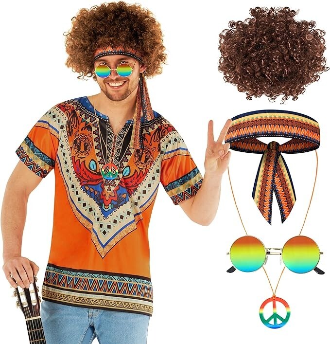 Perruque marron avec moustache Hippie 2 pcs. à prix minis sur Plongez dans la musique, rockez librement et laissez briller votre moi intérieur de star rock/ hippie dans nos perruques afro et accessoires assortis, créez des moments inoubliables qui capturent l'essence de mode des années 70s 80s. Costume Disco Funk AWAVM 4Pièces Perruque Afro Deguisement Hippie Perruque Hippie Costume Perruque Homme Annee 70 Déguisement Hippie Funky: Noir marron or hippie + lunettes de soleil + collier en or + fausse barbe, ce set d'accessoires est conçu pour faciliter l'accessoirisation de vos tenues d'inspiration hippie. Perruque Hippie : Déguisement et vente de Perruque MIVAIUN Lot de 4 accessoires de costume hippie des années 70, perruque afro funky, moustache, accessoires pour homme, perruque hippie des années 60 et 70... Accessoires:lunettes de soleil ajoutent non seulement de la nostalgie, mais aussi de la fraîcheur à votre look; Notre collier en or ajoute du luxe à votre personnalité punk rock; Les fausses barbes ajoutent du fun et de l'authenticité à votre tenue Kit de déguisement hip-hop:1 x perruque,1 x lunettes,1 x collier,1 x bague,1 x fausse moustache. Parfaits pour les fêtes costumées, halloween, spectacles scolaires, fêtes musicales, anniversaires, célébrations, carnaval, Pâques, mariage, jeux de rôle. Un véritable accroche-regard à chaque fête. Matériau de haute qualité:les colliers lunettes de et soleil marron sont fabriqués à partir d'alliages de haute qualité, d'une grande brillance et d'une belle apparence qui n'est pas facile à décolorer. 1 x perruque,1 x lunettes,1 x collier,1 x bague,1 x fausse moustache.