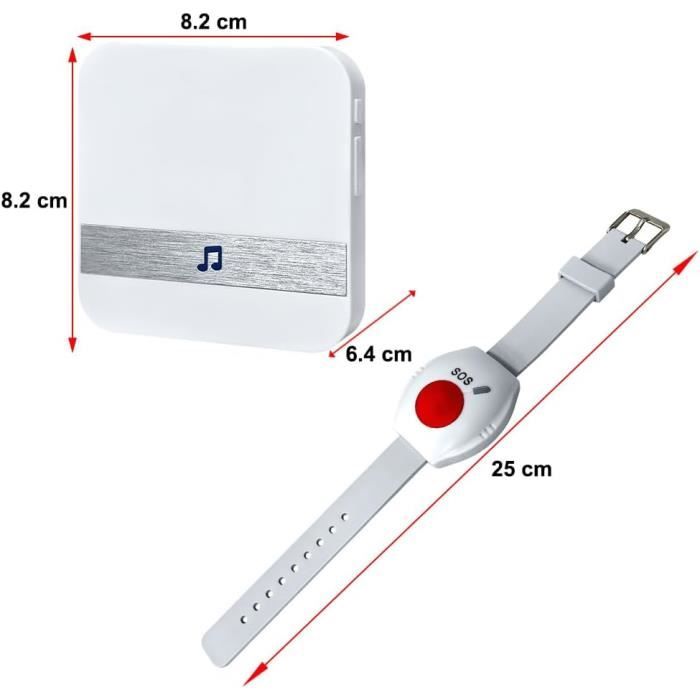 【Portable et facile à installer】Conçu pour être prêt à l'emploi, sans câblage nécessaire. Bouton Urgence Sans Fil Daytech Bracelet Alarme Personne Agee, Alarme Pour Personne En Détresse Bouton SOS Urgence Portatif Alarme Personne Agee Étanche IP68 Daytech Bracelet Alare Personne Agee,Détecteur de Chute,Alare aison... 【Tension】AC100-240V·50/60Hz. 【Bouton d'urgence】Idéal pour les personnes âgées, handicapées et autres personnes ayant besoin d'une assistance immédiate. Bouton D'Appel D'Urgence Personnes Âgées, Téléavertisseur Sans Fil... Facile à utiliser, il suffit de brancher le récepteur sur une prise électrique Puissance de pénétration élevée Il suffit d'appuyer sur le bouton pour obtenir de l'aide en cas d'urgence. Sos Gsm Système D'alarme Bouton Panique Pour Personnes Âgées Et Tous 2 types de rappel : sonore et lumineux 【Étanche IP68】Ce bouton d'urgence est étanche IP68 et résistant à l'eau et à la poussière, ce qui lui permet de fonctionner même dans les toilettes ou par temps de pluie.
