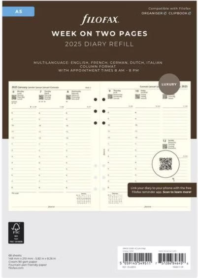 Recharge Agenda 2025 2026 Agenda Filofax Jour Par Page A5 2023 Stock Bureau - FILOFAX Recharge Planning annuel vertical - anglais... Agenda Dépliable Anneaux Filofax Agenda 2026 26-68521R - Format Colonne - Format A5 Agenda Qualité Durable Bureau Cet Agenda Personnel Filofax 2026 Est Une Semaine Sur Deux Pages En Anglais, Avec Une Semaine Par Page Commençant Le Lundi. Janvier à Décembre 2026 Exclusivement disponible en ligne Notre conseil : nous recommandons des anneaux de renfort pour stabiliser les perforations !