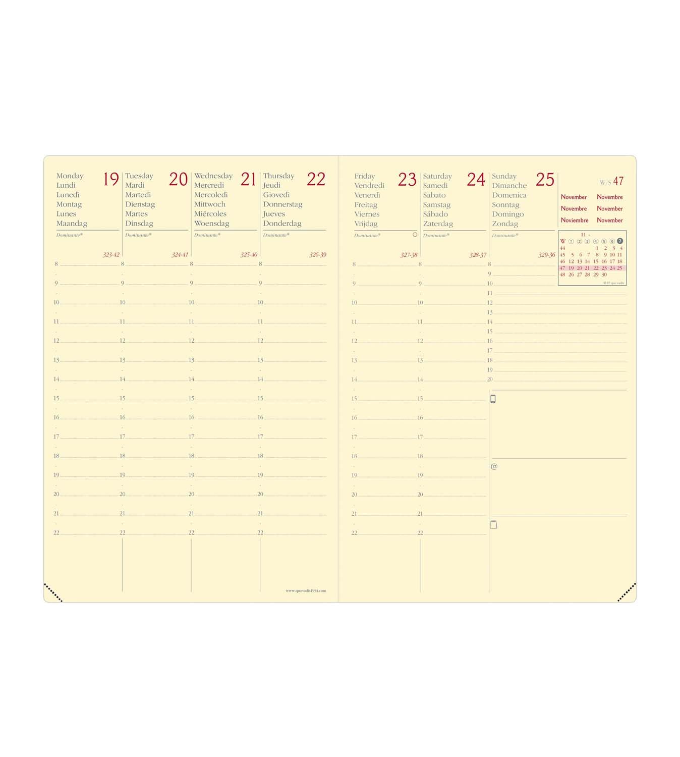 Agenda Quo Vadis 2026 Ministre Agenda Année Civile - AFFAIRES FR - Couverture Calypso - Rose Irisé - 10x15 Cm - Semainier - 13 Mois De Décembre à Décembre - Quo Vadis Pas Cher | Bureau Vallée Agenda 2026 Quo Vadis Ministre Quo Vadis - Agenda - 2026 - Daily 24 - Journalier - Multilingue Achetez Quo Vadis - Agenda - 2026 - Ministre - Semainier Planning - Multilingue - Calypso - Beige - 13 mois de décembre à décembre - 16x24 cm... Contiene una doppia pagina mensile a l’inizio di ogni mese per avere una vista globale delle attività a venire. Carta bianca Clairefontaine per una scrittura morbida e fluida e angoli perforati rimovibili per orientarti in modo facile e veloce. Apertura/chiusura pratica grazie al magnete integrato Agenda settimanale con presentazione della settimana su 2 pagine per avere una visione panoramica in un solo colpo d'occhio . Comprend sur chaque double page une zone libre pour y noter ses rappels (personnes à contacter, choses à faire…) Papier blanc Clairefontaine pour une écriture douce et fluide et coins perforés détachables pour se répérer facilement et rapidement Couverture amovible avec rabat en découpe festonnée pour une silhouette élégante Détail chic et agenda sobre, tels sont les maîtres-mots de la gamme Calypso. Son rabat de fermeture aimantée avec une découpe festonnée fait toute l’originalité de ces agendas, et vous séduira par son charme discret