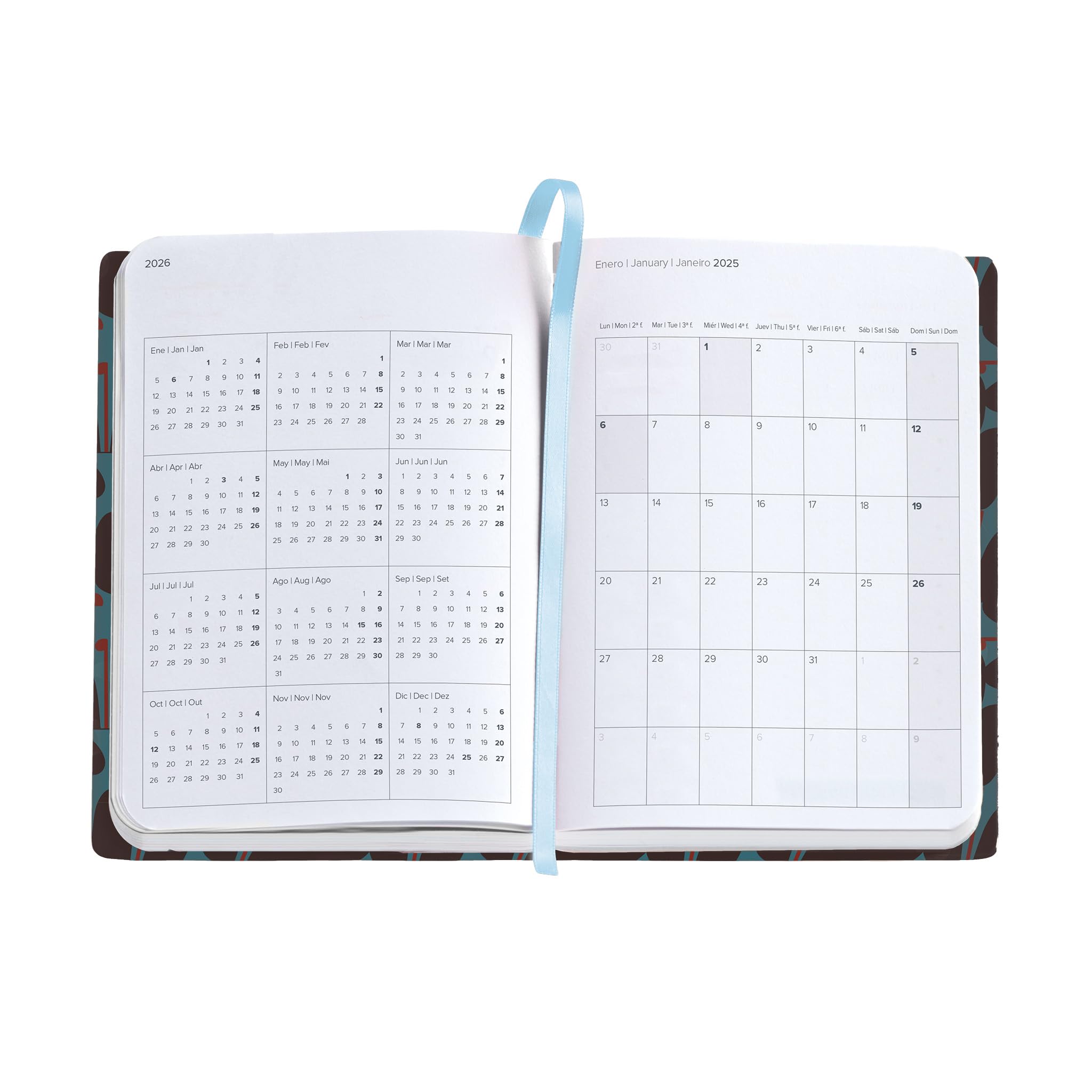 Agenda anual 2024 Miquelrius Plus semana vista Chester Aguamarina Idéal pour ceux qui préfèrent visualiser la semaine en un coup d'œil dans un format compact et portable. Agenda Poche Fermeture élastique Miquelrius Agenda Journalier 2026 Avec Couverture Rigide En Carton Agenda Semainier Compact 122x168mm Multilingue en espagnol, anglais et portugais, avec icônes utiles et jours fériés nationaux et portugais. Agenda Anual (2026) Miquelrius Recycled Espiral Tapa Dura con Goma Plus... Agenda 2026 miquelrius plus semana vista impressionist flowers... Comprend les jours fériés nationaux et portugais, plus d'icônes utiles. Format compact : agenda 2026 Journal 122 x 168 mm, plus petit que A5 et parfait à emporter avec vous. Papier premium FSC ️ Papier ivoire 80 g/m² certifié FSC, écriture lisse et sans taches, idéal pour vos plans hebdomadaires. Ses couvertures rigides en carton doublé plastifié mat protègent l'intérieur avec style et résistance, tandis que le papier ivoire certifié FSC de 80 g/m² offre une expérience d'écriture douce et agréable. Planificateur multilingue : semaine à vue horizontale en espagnol, anglais et portugais. Avec son format semainier visible et ses dimensions 122 x 168 mm, il est parfait pour organiser votre semaine de manière claire et rapide.