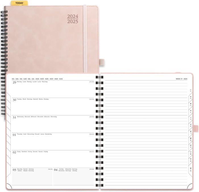 Agenda semainier Exacompta Swan à spirale 22 W - 18,5 x 22,5 cm - bleu Structure : format semainier qui permet de visualiser toute la semaine en un coup d'œil. Agenda Spirale A5 Agenda Scolaire 2024 2025 Oxford Office Semainier Spiralé 10x15cm Gris Agenda Semainier Bilingue En outre, il est fabriqué en papier certifié FSC, ce qui garantit son origine à partir de sources durables. Préparez-vous pour la nouvelle année avec l'agenda scolaire 2025-2026 de Liderpapel Basic de couleur rose. Cet agenda est l'outil idéal pour garder vos activités et tâches bien organisées, grâce à son format semainier au format A5 et son design bilingue. Conçu pour faciliter la planification académique et... Agenda Seainier Bilingue 2024: Noir Professionnel 1 Seaine Sur Deux Pages - Petit Forat A4... Sections supplémentaires : comprend une feuille de temps, un planning hebdomadaire, un calendrier mensuel, un tableau des enseignants et une section pour les dates importantes. Bilingue : disponible en deux langues, idéal pour les étudiants des institutions bilingues. Durabilité : certifié FSC pour une gestion responsable des forêts. Avec reliure à spirale et couverture en polypropylène, il offre la fonctionnalité et la durabilité dont vous avez besoin pour affronter l'année scolaire en toute confiance. Papier de 70 g : grammage standard qui empêche le transfert d'encre, conforme à la certification FSC pour sa durabilité. Cet agenda est l'outil idéal pour garder vos activités et tâches bien organisées, grâce à son format semainier au format A5 et son design bilingue.