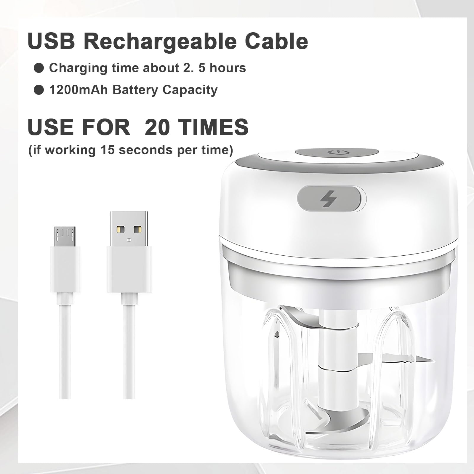 Broyeur électrique Main USB Garosa Mini Hachoir à L'ail Ail Chopper Électrique Portable Bleu 3 Lame Conception 250mg Mini Mixeur Portable BlumWay Mini Robot culinaire, Hachoir à ail électrique chargeur USB, hachoir à nourriture électrique avec 3 lames tranchantes, pour lail, gingembre, Ioignon, piment - 250ML&100ML (Rose SWT Broyeur d'ail mini hachoir Mini presse-ail électrique 250ml 85670 peuvent être directement insérés. Hachoir Électrique Mini Ail Chopper USB Rechargeable - Marque 123... Polyvalent: avec un ensemble de coupe-légumes électriques à la main, vous pouvez avoir une trancheuse de légumes électriques et un broyeur de viande électrique en même temps., ., Une machine est polyvalente, ce qui rend la préparation des aliments plus facile et plus rapide. Nettoyage à une clé: toute la machine à ail électrique est rincée, le trou d'alimentation est ajouté avec un détergent pour commencer avec une clé, et il peut être lavé à l'eau courante en remuant pendant 5 secondes. Matériel de santé: Ce mini plateau électrique à l'ail est en plastique et en acier inoxydable, durable et résistant à la corrosion. Application large: Cet hachoir de légumes multifonctionnel peut trancher ou écraser divers aliments, comme l'ail, le gingembre, le piment, les bandes de viande, l'oignon, la citrouille., ., Plus le temps prend du temps, plus les ingrédients sont fins, ce qui peut être utilisé comme suppléments de nourriture pour bébés., ., C'est un bon accessoire dans la cuisine et un cadeau réfléchi pour les personnes qui aiment cuisiner ou bricolage.