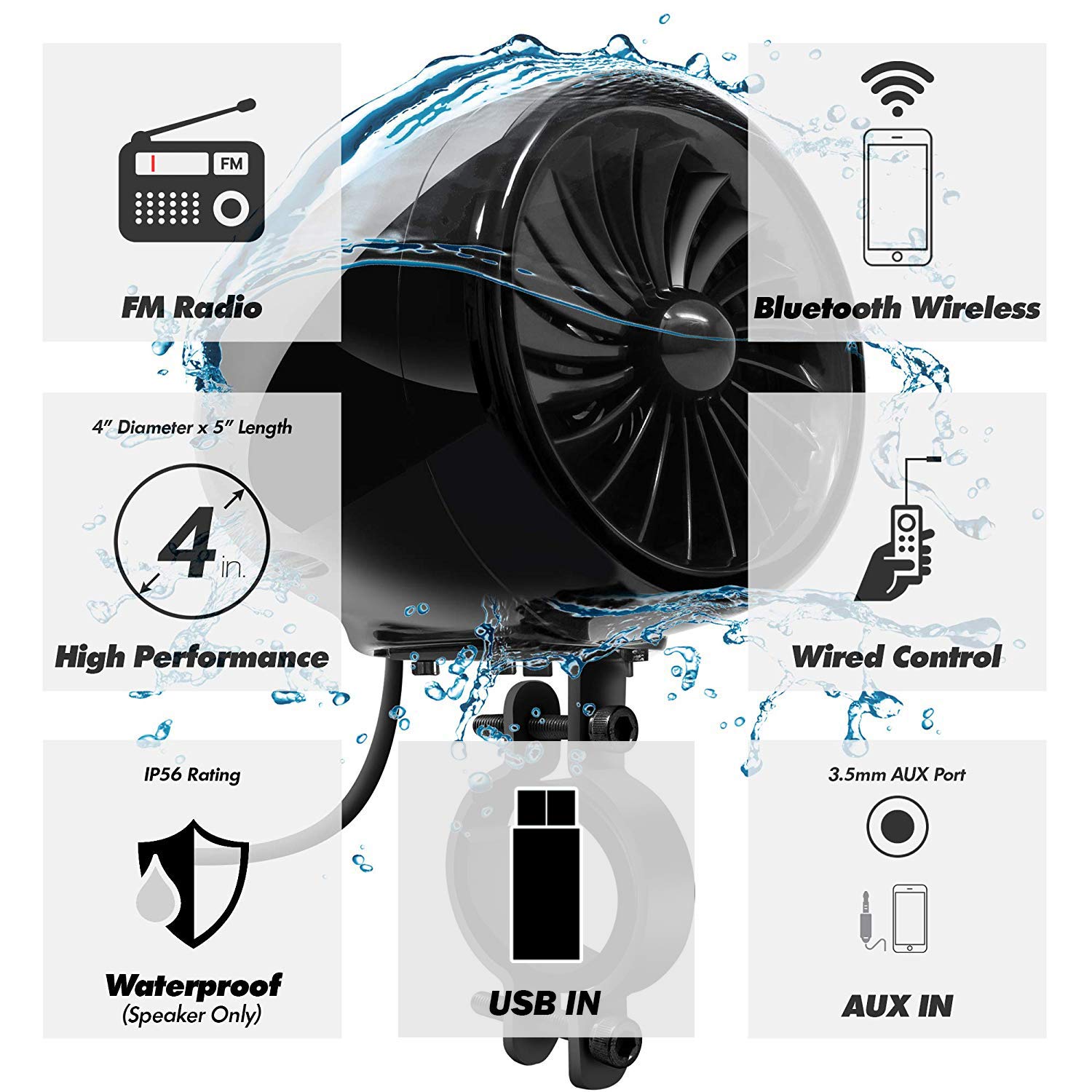 Pleine Fonction De Commande Filaire. Aileap 600W Aplificateur Intégré 4.5 Gae Coplète... Compatible avec iPhone 4 / 5 / 6 / 7 / 8 / X / Xs Max, iPod, huawei, Xiaomi, Samsung Android Galaxy S Note Série et tout smartphone appareils. Performance 2 Canal 150W Étanche Amplificateur avec Deux 4 pouces Gamme Complète Moto Haut-parleurs Stéréo., Universal fit pour 1 à 1., 5 dans., Guidon. Ampli Moto 150W Avec USB AUX Aileap 2.1ch Aplificateur 4" Gae Coplète Étanche Bluetooth Oto Radio Fm Construit avec Haute-Qualité ABS Matériel., Haute-Performance Bass., Bluetooth 5., 0: Sans Fil Diffuser votre musique préférée et radio canal de votre smartphone. LIRE AVANT ACHAT / REMARQUES IMPORTANTES: 1., La taille des haut-parleurs est de 4 pouces (L) x 5 pouces (L). Parfait pour Harley Moto ATV UTV RZR 4 Roues Polaris. Avancée IP56 Résistant à L'eau Conception (Haut-Parleur et Amplificateur). Superbe Cristal Qualité Sonore. Veuillez vous assurer qu'il convient à votre vélo. Innovantes Cachée Antenne Conception., 3., 5mm Audio Jack AUX IN Disponibles., FM Radio Prêt., USB DANS Ajouté. Veuillez installer l'ampli dans une zone ombragée pour éviter les pluies et la lumière directe du soleil. L'amplificateur de puissance est normal de chauffer pendant son utilisation Veuillez vous assurer d'avoir suffisamment d'espace et d'espace pour installer AVANT l'achat., 2., L'amplificateur de puissance est normal pour chauffer pendant son utilisation, veuillez ne pas le toucher pendant qu'il fonctionne pour éviter de vous blesser., 3., La pince de montage convient à une barre de 1 à 1,5 po. Installation facile: Est Livré avec tout le matériel nécessaire et câblage., Plug and Play. Enceinte Moto Aileap 150 Otor Versterker Audio Systee Et Aux, P3, F Radio, 4 Enceinte Jbl