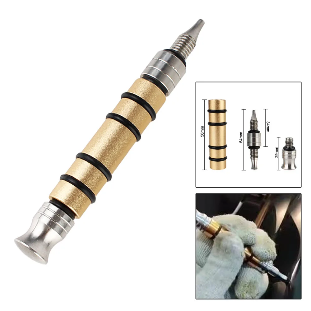 Machine De Débosselage à Induction Magnétique 1380W, Ensemble D'outils De Débosselage Sans Peinture Pour Carrosserie Avec une longueur réglable et une prise en main confortable, cet outil contient deux types de têtes de frappe pour une utilisation polyvalente. Fabriqué avec des matériaux robustes, ce débosselant est un incontournable pour tout amateur d'automobile Stylo Nivellement Réparation Bosses Voiture Outil De Levage Avec Aimant, Outil De Réparation Des Bosses De Voiture, Stylo à Percussion, Kit De Marteau, Alliage De Titane, Outil De Réparation Des Bosses En Tôle Non Peinte Outil Réparation Tôle Précision Caractéristiques : * Fonction de nivellement magnétique : ce stylo de nivellement de réparation de bosses de voiture utilise un mécanisme magnétique qui assure un alignement et un positionnement précis, ce qui facilite l'obtention d'une finition homogène sur les réparations de tôle. * Taille : comme indiqué sur la photo., Couleur : voir photo. Stylo de nivellement magnétique pour réparation de bosses de voiture... * Construction en fibre de carbone : fabriqué à partir de fibre de carbone très dure et résistante à l'usure, ce stylo est conçu pour résister aux rigueurs de la réparation automobile tout en offrant une performance durable. * Compatibilité haute universalité : oui., * Numéro OEM : non. * Fonction de nivellement magnétique : ce stylo de nivellement de réparation de bosses de voiture utilise un mécanisme magnétique qui assure un alignement et un positionnement précis, ce qui facilite l'obtention d'une finition homogène sur les réparations de tôle. Contenu de l'emballage : 1 stylo de réparation de bosses et de nivellement de voiture, 3 têtes de rechange.