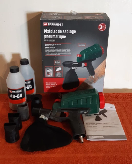 pistolet de sablage pneumatique, machine de sablage, embouts de sablage Pistolet de sablage à air comprimé avec accessoires| Prix discount... Pistolet Professionnel PARKSIDE® PISTOLET DE Sablage à Air Comprimé EUR 21,90 - FR Connection Rapide Utilisé Soufflette à air comprimé Tout l'assortiment Bricolage jardin Machines ateliers Outil électrique Outillage pneumatique Soufflette à air comprimé Mannesmann Pistolet de sablage 1 Image Poids du produit : 0,9 kg. Produit automobile idéal