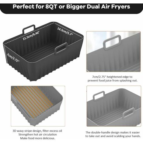 Ninja Foodi Accessoires de Friteuse à Air Chaud 2025 AF500EU AF400EU, AF300EU, Double Stack XL Il vous suffit de parcourir notre vaste sélection des meilleurs moules en silicone pour air yer et de filtrer par meilleure correspondance ou par prix pour trouver celui qui vous convient le mieux Doublure Silicone Réutilisable Air Fryer Panier En Silicone Pour Friteuse À Air,Divisé Pot En Silicone-Moule En Accessoire Air Fryer Description du produit Moule en Silicone pour Friteuse à Air (2 pièces), permettent de garder votre friteuse à air comprimé propre, Jusqu'à 428°F Résiste à des températures allant de -4°C à 220°C, c'est une excellente alternative aux doublures en papier sulfurisé. Accessoire Air Fryer,2 Paquet Moule Air Fryer Pour Ninja Foodi Af400Eu Af300Eu 9.5L,Air Fryer... 【Plateau en silicone pour friteuse à air】 Revêtement rectangulaire en silicone pour friteuse à air, compatible avec Double Zone 7,6 L. 【Design pratique 】le revêtement en silicone pour friteuse à air Wanocean est livré avec deux poignées pour protéger vos mains des brûlures. 【Largement applicable】 Détails dimensionnels : 20 x 13 x 7 cm, convient pour friteuse à air à double panier de 7,6 L (mesurez votre friteuse à air avant d'acheter), cuiseur vapeur, four, marmite instantanée, micro-ondes, etc. 【Facile à nettoyer et passe au lave-vaisselle】le silicone doux et élastique facilite le nettoyage, il suffit de renverser les résidus alimentaires et la saleté, de le retourner et de le laver à l'eau tiède, et il passe complètement au lave-vaisselle.