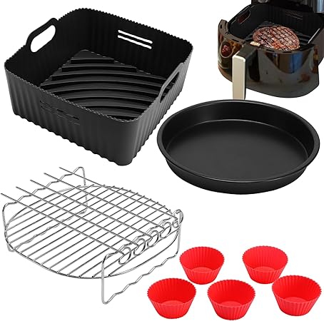 Accessoires Cuisine Silicone Réutilisable Moule Silicone Air Fryer Pour Ninja AF140EU PRO Friteuse 4,7L, 5 Silicone Cuisine Friteuse Ninja Moule Air Fryer Ninja,Moule Silicone Air Fryer Pour Ninja Air Fryer Parfaitement Adapté pour Ninja AF140EU 4,7L/AF180EU 6,2L]Notre moule en silicone pour friteuse et nos accessoires de gril pour friteuse sont conçus pour s... 🍟【Matériau de Qualité Alimentaire】Les accessoires en silicone pour friteuse à air sont fabriqués en silicone de qualité alimentaire, réutilisable, sans BPA et résistant à des températures allant jusqu'à 230°C/450°F pour une longue durée de vie. De plus, notre grille de friteuse, nos grilles de toast sont soigneusement fabriquées en acier inoxydable 304 de haute qualité pour assurer la durabilité et la compatibilité pour tous vos besoins de cuisson, parfait pour la friteuse Ninja AF180EU. 🍟【Répond à Différentes Exigences de Cuisson】Le plateau en silicone d'une seule pièce vous permet de cuire des poissons entiers ou d'autres gros morceaux en une seule fois. Conçu avec un bord de 7cm de haut pour protéger votre friteuse de la graisse et des débris alimentaires, prolongeant la durée de vie de votre friteuse et réduisant le temps de nettoyage. Grâce à sa grande grille, il est également idéal pour les brochettes, les ailes de poulet, les filets de poulet, les côtes levées et bien plus encore. 🍟【Facile à Nettoyer et Réutilisable】Les accessoires air fryer Ninja AF180EU sont faciles à nettoyer et passent tous au lave-vaisselle pour gagner du temps, tandis que leur construction rembourrée et durable de qualité alimentaire est réutilisable, ce qui les rend idéaux pour un large éventail de processus de cuisson et parfaits pour les réunions de famille. REMARQUE : Si, pour quelque raison que ce soit, vous n'êtes pas satisfait de votre achat, veuillez nous contacter. NINJA Friteuse sans huile à air chaud AF180EU - Noir pas cher