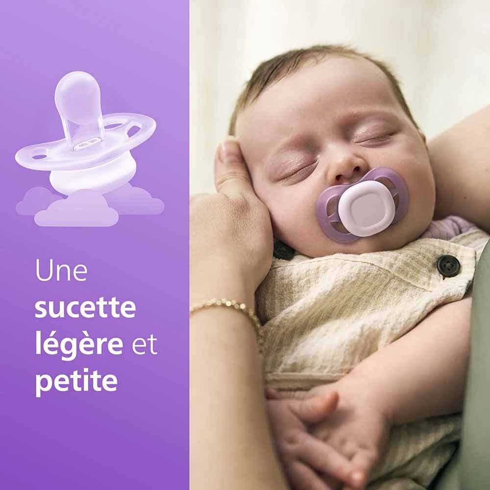 La propreté est assurée pour la prochaine utilisation. Sucette Nouveau-né Philips Avent Sucettes Ultra Air - Tétines Orthodontiques Souples Tétine Orthodontique Silicone Plus écologiques : vous prenez soin de votre bébé tout en préservant la planète. ¹ Pièces en plastique dur à l'exception de la tétine en silicone (approche mass balance) ² Un test réalisé en 2023 auprès de consommateurs des États-Unis confirme une acceptation à 98 % de la tétine Philips Avent texturée utilisée pour les sucettes ultra Philips Avent (n=201) ³ Comparé aux méthodes de stérilisation traditionnelles (ébullition) pour les sucettes ⁴ Les tétines orthodontiques en silicone souple Philips Avent accompagnent les mouvements naturels des muscles de la bouche et réduisent le risque de malocclusion ⁵ D'après les résultats d'un test réalisé auprès de consommateurs des États-Unis (2023, n=201) Sucette nouveau-né 0 à 2 mois avec tétine orthodontique⁴ en silicone souple symétrique ; tétine à col étroit conçue pour réduire la pression exercée sur les dents et les gencives La gamme Philips Avent Ultra se compose de sucettes et d'étuis de stérilisation fabriqués à 80 % à partir de matières d'origine végétale¹ Acheter Ultra start Nuit SCF075/18 En Ligne En optant pour des choix plus durables, vous prenez soin de votre bébé tout en préservant la planète. C'est une façon simple et hygiénique d'être toujours prêt lorsque votre enfant a besoin d'être apaisé. Lorsque vous souhaitez utiliser la sucette, il vous suffit de verser un peu d'eau dans l'étui et de le passer au micro-ondes pendant 3 minutes. La sucette la plus légère et la plus petite de la gamme : la sucette ultra start nuit Philips Avent est le choix idéal pour la première sucette de bébé. Le kit comprend : 2 sucettes ultra start nuit Philips Avent pour bébés âgés de 0 à 2 mois, 1 étui de stérilisation et de transport Ultra Air Sucette 0-6 mois Philips Avent - sucette bébé Sucettes nuit anatomiques en silicone 6m MAM Night - Coloris aléatoire... Cette sucette, la plus légère et la plus petite de la gamme, est un véritable must parmi les produits essentiels pour les bébés, car elle répond aux besoins naturels de succion de votre bébé dès le premier jour. L'ensemble de sucettes sans BPA est livré avec un étui réutilisable : un étui de voyage pratique pour transporter les sucettes de votre bébé, qui fait également office de stérilisateur. Les tétines sont composées à 100 % de silicone alimentaire. La sucette ultra start nuit Philips Avent est la première sucette idéale pour les nouveau-nés.